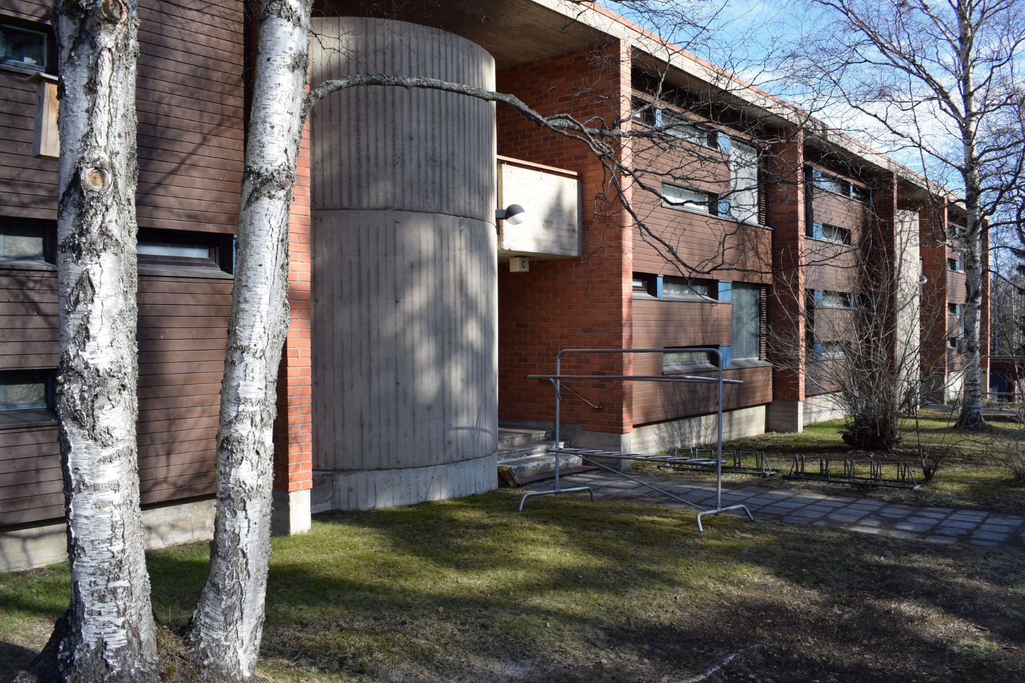 [KUVA 5. Ensimmäisen vaiheen pienkerrostalon sisääntulojulkisivu. vuoden 2018 toukokuussa]