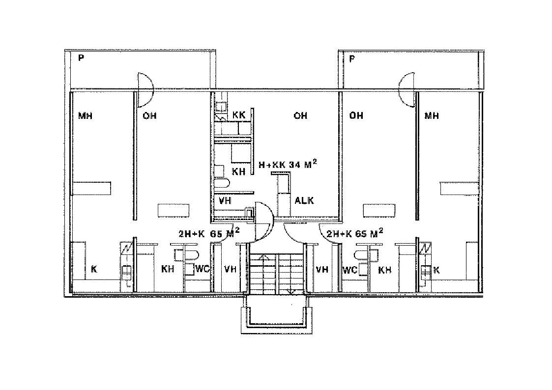 [KUVA 9. Toisen vaiheen (1968) kerrostalolamellin pohjapiirros. Kuva: Arkkitehti 1977/7.]