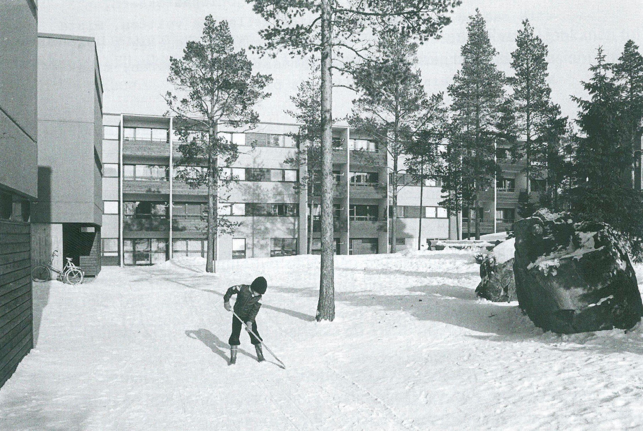 [KUVA 15. Viidennen vaiheen kerrostaloja toukokuussa 2018. Kuva: Arkkitehti 1977/7.]