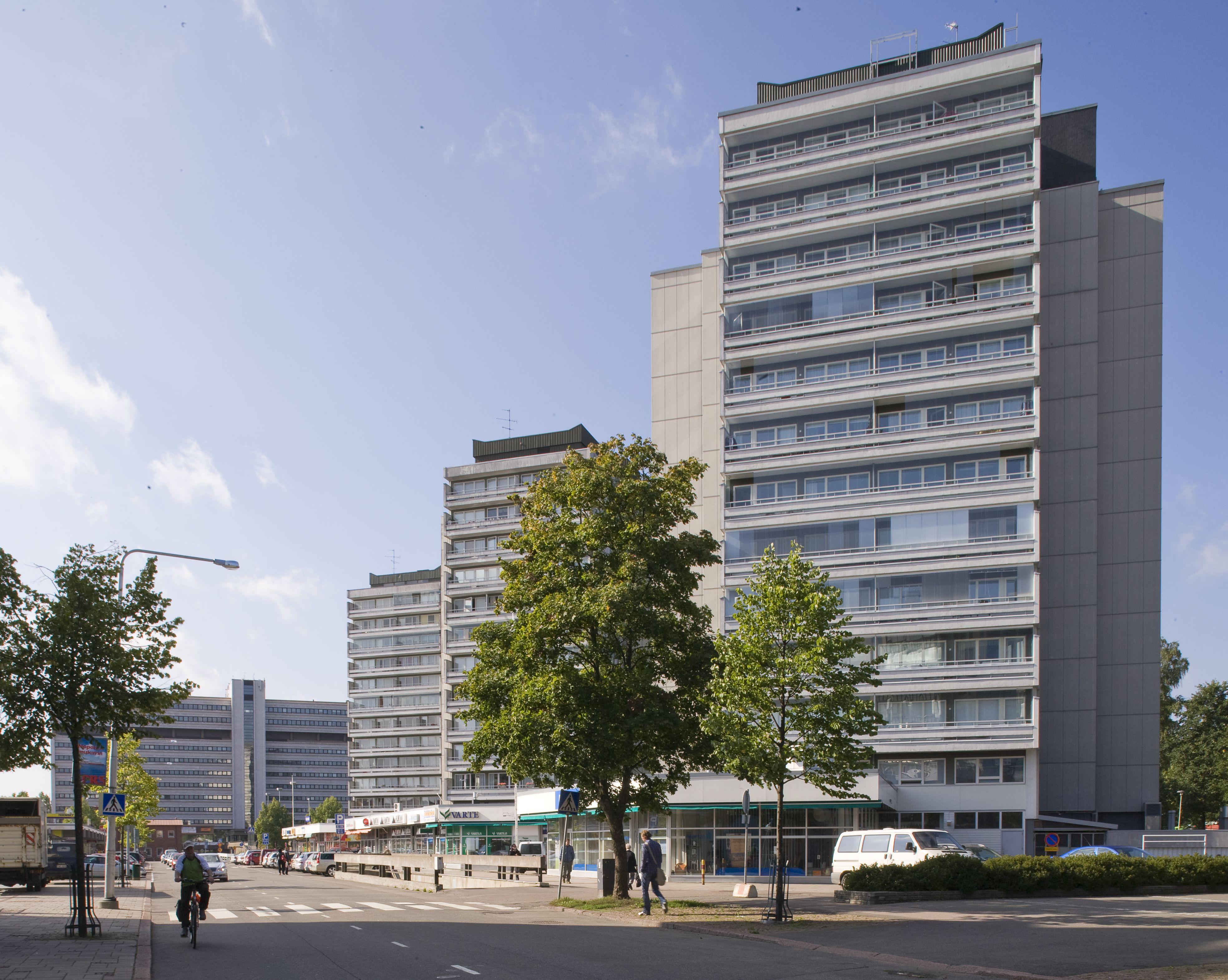 Salpausselänkadulla oli jo korkeita rakennuksia, 1954 valmistunut lääninvirastotalo ja rakenteilla ollut ns. Salaman talo (arkkitehti Harry Schreck). ”Eräänä oleellisena syynä on myöskin ollut pyrkimys sitoa Kauppalankadun ja Salpausselänkadun seitsenkerroksinen lamellitalo sellaiseen kompositioon, jossa sen poikkeukselliset dimensiot sulautuvat enemmän vertikaaleihin rakennusyksiköihin.”[15] Tornitaloryhmien väliin, yhdyskunnan pääväylien risteykseen, nousi 1968 kaupungintalo, jonka arkkitehtuuri on kansainvälisesti tunnustettua. Kaupungintalon arkkitehteina toimivat Bertel Saarnio ja Juha Leiviskä.