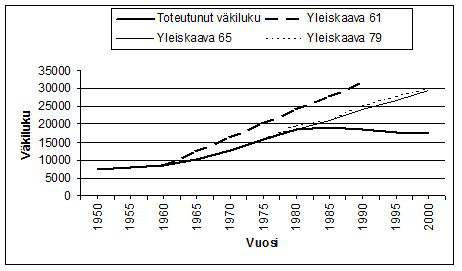 Yleiskaavan perusselvitys ja yleiskaavaselostus vuodelta 1979 on 189-sivuinen eli 10–20 kertaa isompi kuin 1960-luvun yleiskaavoissa. Väestöennusteiden mukaan toteutetun kaavoituksen riski on se, että uudet asuntoalueet ja niiden palvelut eivät toteudu suunnitellun laajuisena, mikä hankaloittaa pitkään asukkaiden arkea.