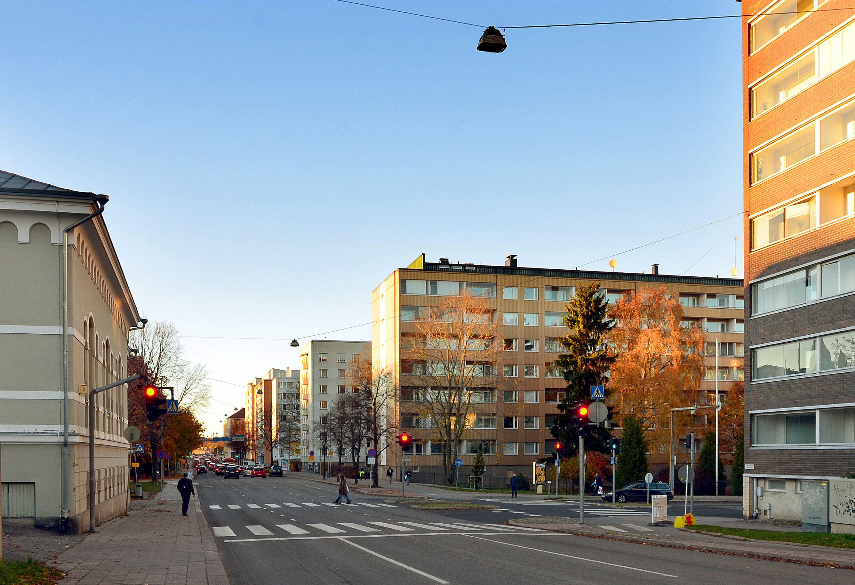 Katuja päätettiin leventää ruutukaava-alueella autoliikenteen sujuvoittamiseksi. Tilaa pysäköintipaikoille ja lisäkaistoille otettiin tonteista. Kun uudisrakennus asemakaavanmuutoksella sijoitettiin irti kadun varresta, syvemmälle tontille, oli valokulma-säännön perusteella mahdollista rakentaa korkeampi talo. Jos tontinomistaja luovutti tonttimaata kadun leventämiseksi, korvattiin luovutus edelleen rakennusoikeuden lisäyksellä. Levennettyyn katutilaan jäi monin paikoin vanhoja puita 1800-luvun kaavan palokujanteiden kohdilta. Iäkkäät puut antavat edelleen katukuvaan vehreyttä.
