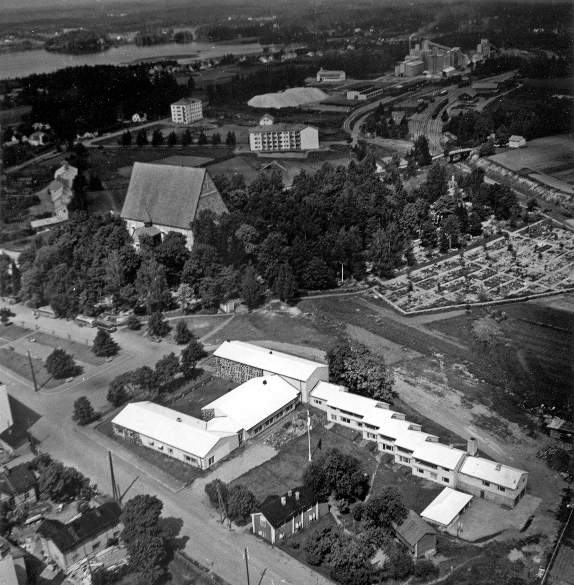seurakuntatalo, joka valmistui vuonna 1950. Sen piirustukset ovat Aarne