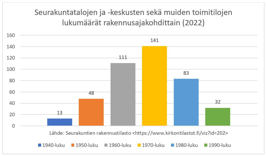 [7] Seurakuntien rakennustilasto 2022, Kirkon tilastot; Kirkkohallituksen yliarkkitehti Edla Mäkelän sähköposti tekijälle, 8.3.2022.