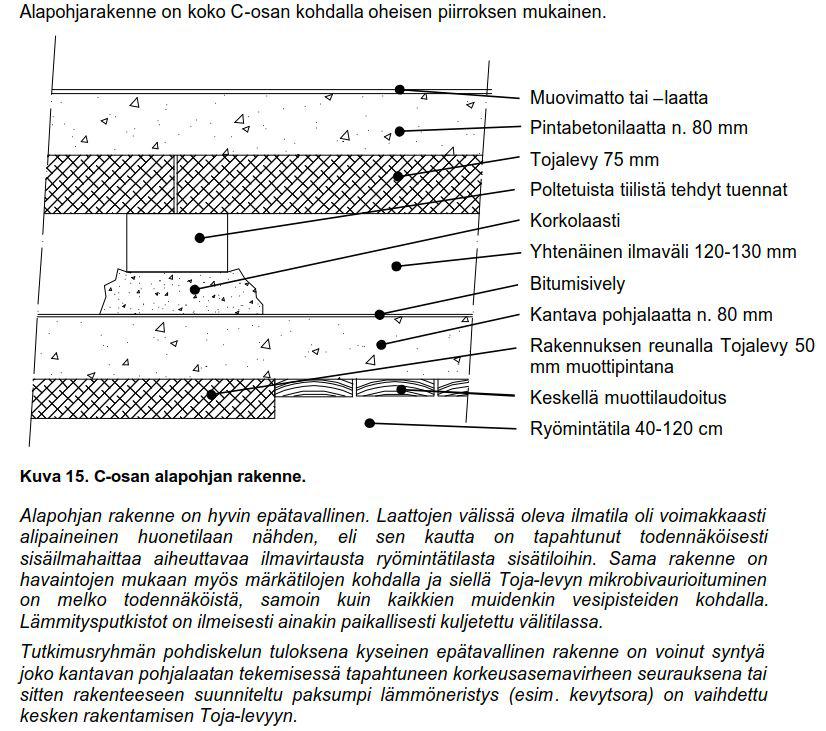 [1] Annila et al. 2014, 301–306. Jommi Suonketo on diplomi-insinööri ja toimii projektitutkijana Tampereen teknillisessä yliopistossa. Suonkedon käytännön kokemus sadoista kuntotutkimuskohteista on artikkelin perusta.