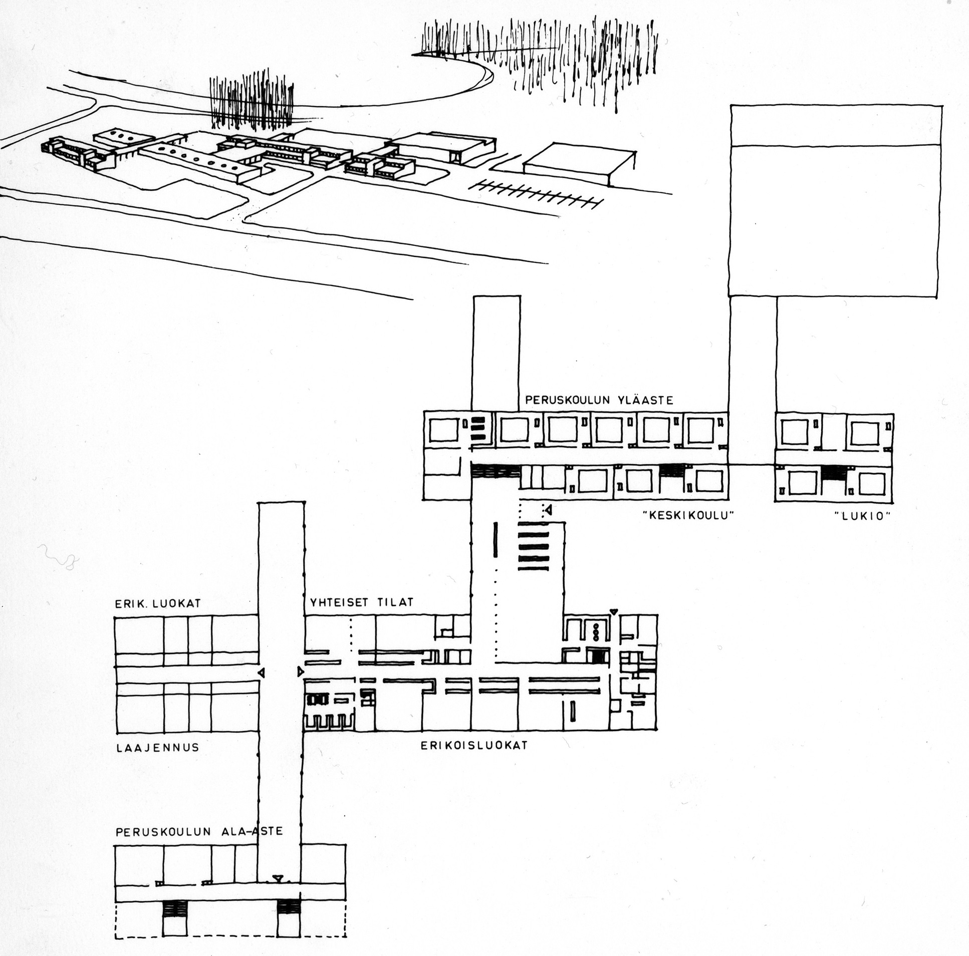 [17] Arkkitehti 3/1962, 26–29. Koulu on Toivo Korhosen suunnittelema.