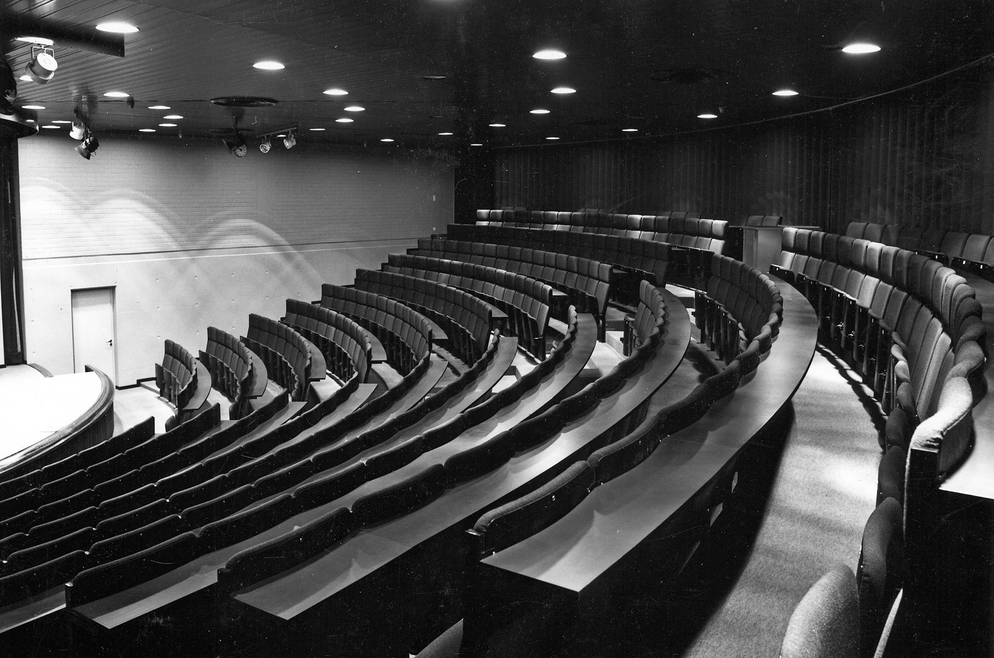 Kuvassa auditorio Sylvään koulusta, Vammala 1973.