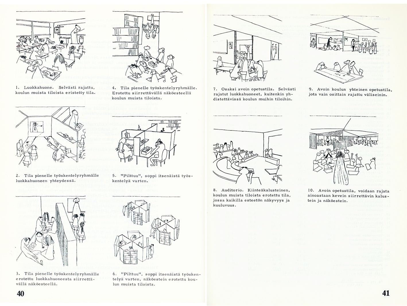 1960-luvulla käytiin useissa maissa vilkasta keskustelua perinteisen koulumuodon uudistamisesta. Ulkoa oppimiseen perustuva yksilösuoritus haluttiin muuttaa aktiiviseksi ryhmätyöskentelyksi. Syntyi kouluja, joissa kokeiltiin uusia opetustapoja ja työmuotoja, kuten suurryhmä-, pienryhmä- ja yksilöllinen opiskelu. Nämä edellyttivät opetustilojen jakamista ja kalustamista uudella tavalla. Ne muuttivat myös valaistuksen ja ilmanvaihdon suunnittelua.