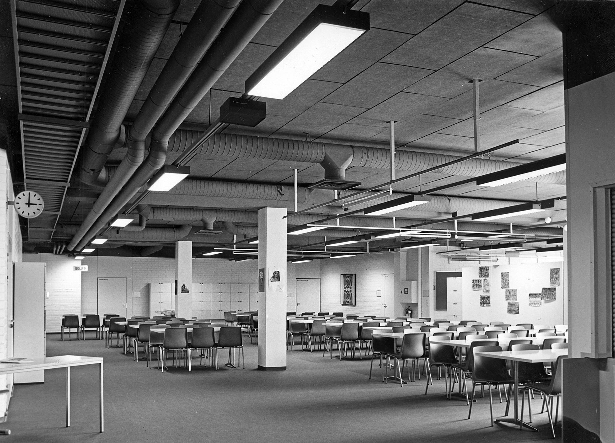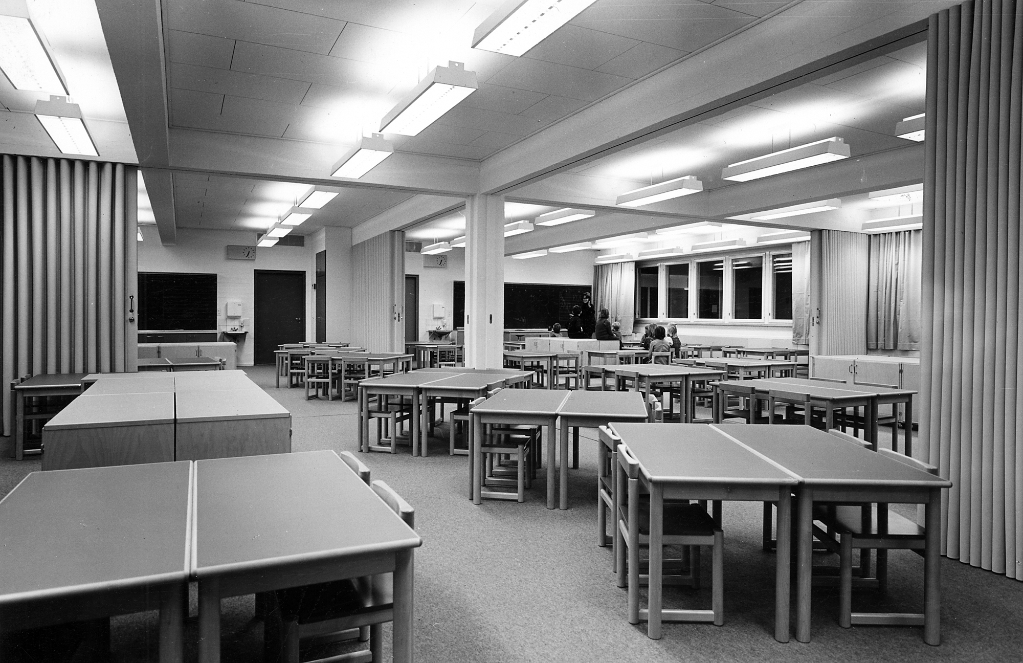 Arno Savela: Koulukeskus, Kankaanpää 1977. Ruokasali. Kuva: Jukka Riihelä, Arkkitehtuurimuseo.