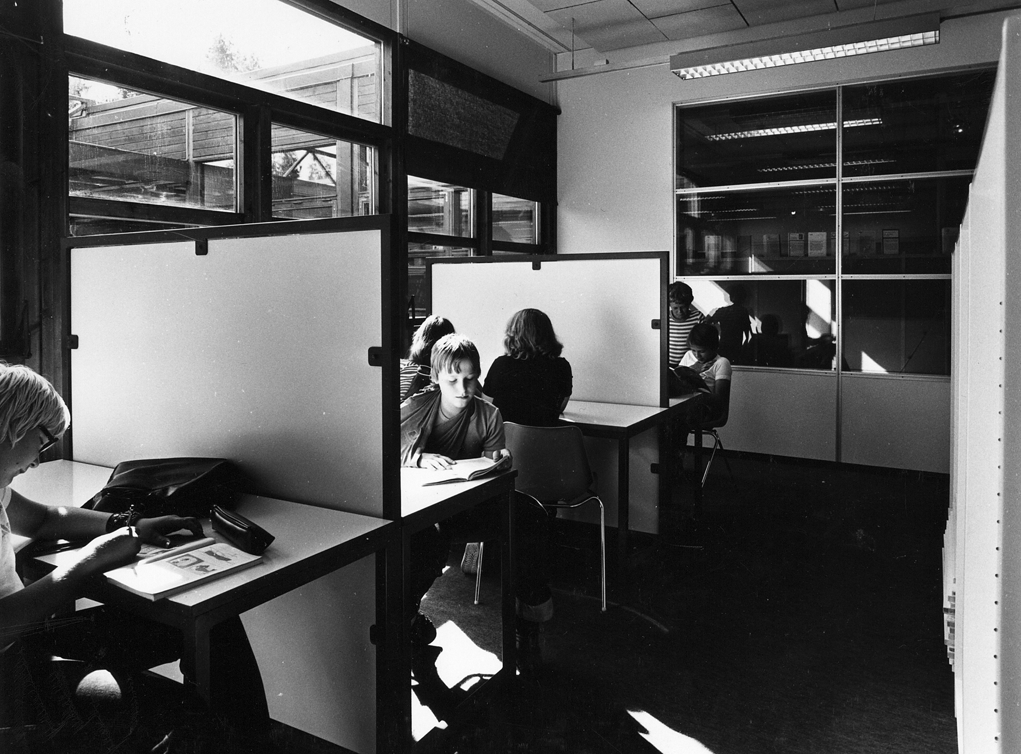 Arno Savela: Rekolan yhteiskoulu, Vantaa 1974–1975. Avotiloja voitiin jakaa ”pilttuiksi”. Kuva: Heikki Lahdenmäki, Arkkitehtuurimuseo.