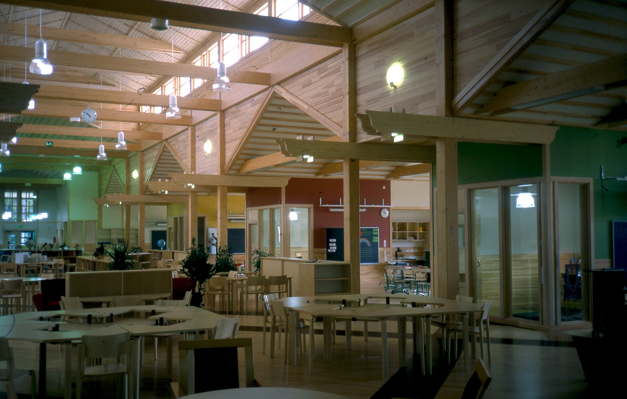 Heinävaaran koulu Kiihtelysvaarassa (nykyisin Joensuuta) käynnisti valmistuessaan vuonna 1999 laajan keskustelun avoimista oppimisympäristöistä.[24] Koulu rakennettiin osana Paavo Lipposen I hallituksen aikaista Puun Aika -kampanjaa 1998–1999.