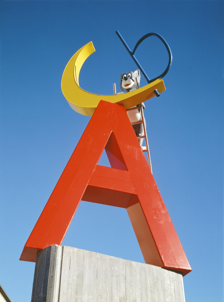 Antti Nordinin (s. 1960) veistos Flai-Flai oli kiipeilyintoisten lasten suosiossa. Vaikka teos etäisesti muistuttaakin jättimäisiä rakennuspalikoita, sopeutui se erinomaisesti ympäristöönsä ja lapset pystyivät piiloutumaan veistoksen sisälle sen keskellä olevaan ”pesään”. Veistos on maalattua terästä ja se pystytettiin vuonna 1990. Teos poistettiin koulurakennuksen purkamisen yhteydessä vuonna 2019.