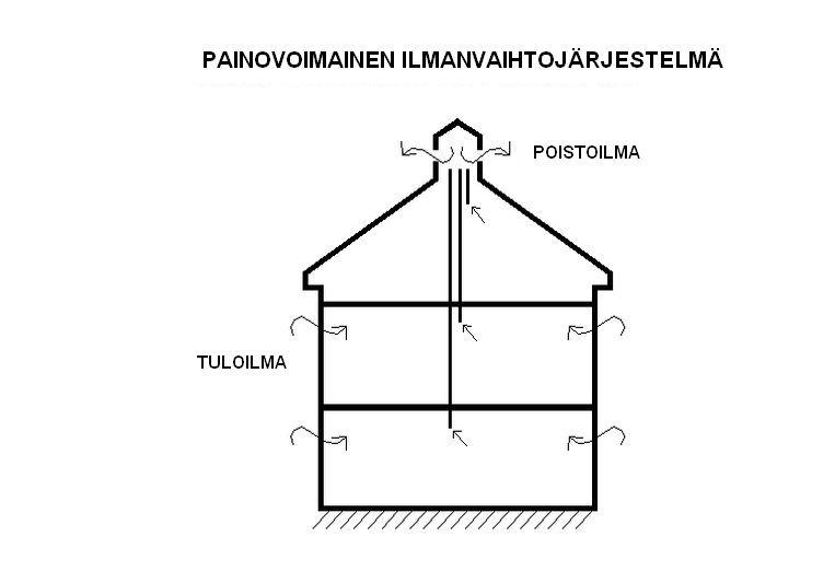 1940- ja 1950-luvuilla uudet koulut varustettiin pääsääntöisesti painovoimaisella ilmanvaihdolla. Painovoimainen ilmanvaihto perustuu lämpötilaeroihin sisä- ja ulkoilman välillä. Mitä suurempi lämpötilaero on, sitä paremmin järjestelmä toimii. Tuuli vaikuttaa sisä- ja ulkoilman väliseen paine-eroon, joka tehostaa ilman poistumista. Ilma vaihtuu myös ulkoseinien rakennerakojen kautta tuulen aiheuttaman ali- ja ylipaineen vuoksi rakennuksen eri sivuilla. Koulunkäynti 1950-luvulla ajoittui syyskuun ja toukokuun väliseen aikaan, jolloin sisä- ja ulkolämpötilaerot, lämpimiä kevätkuukausia lukuun ottamatta, olivat riittävän suuria synnyttämään hormeissa vetoa ja siten lisäämään ilmanvaihtoa. On erityisesti huomattava, että ilma vaihtui viikon jokaisena päivänä ja päivän jokaisena tuntina.