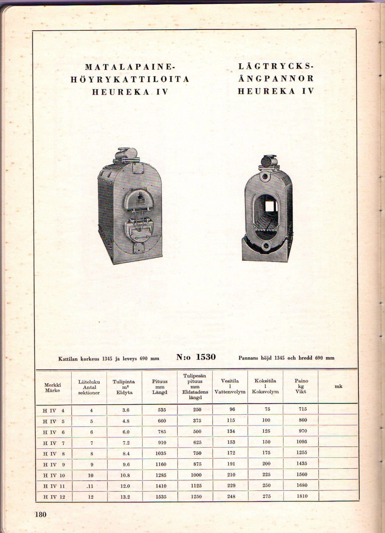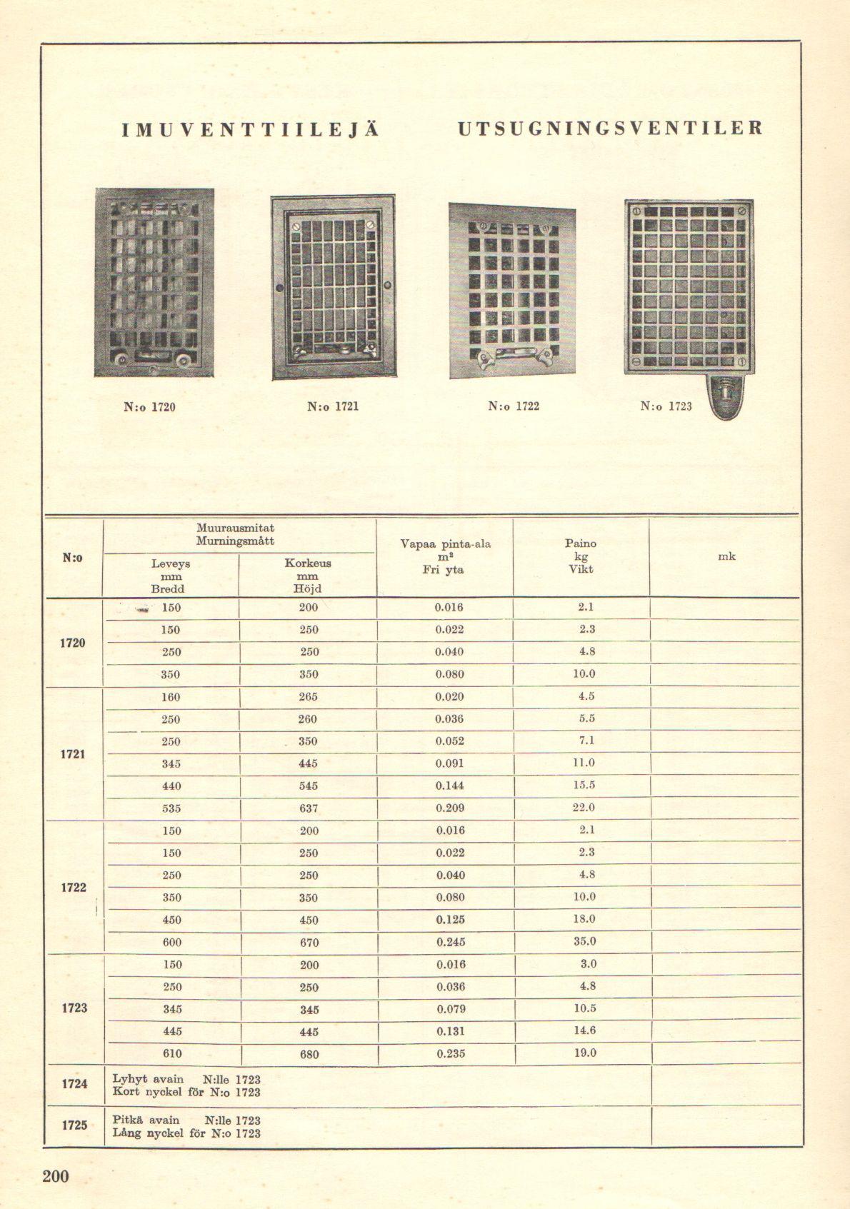 Painovoimaisen iv:n säleiköt, Yleisluettelo 1952.
