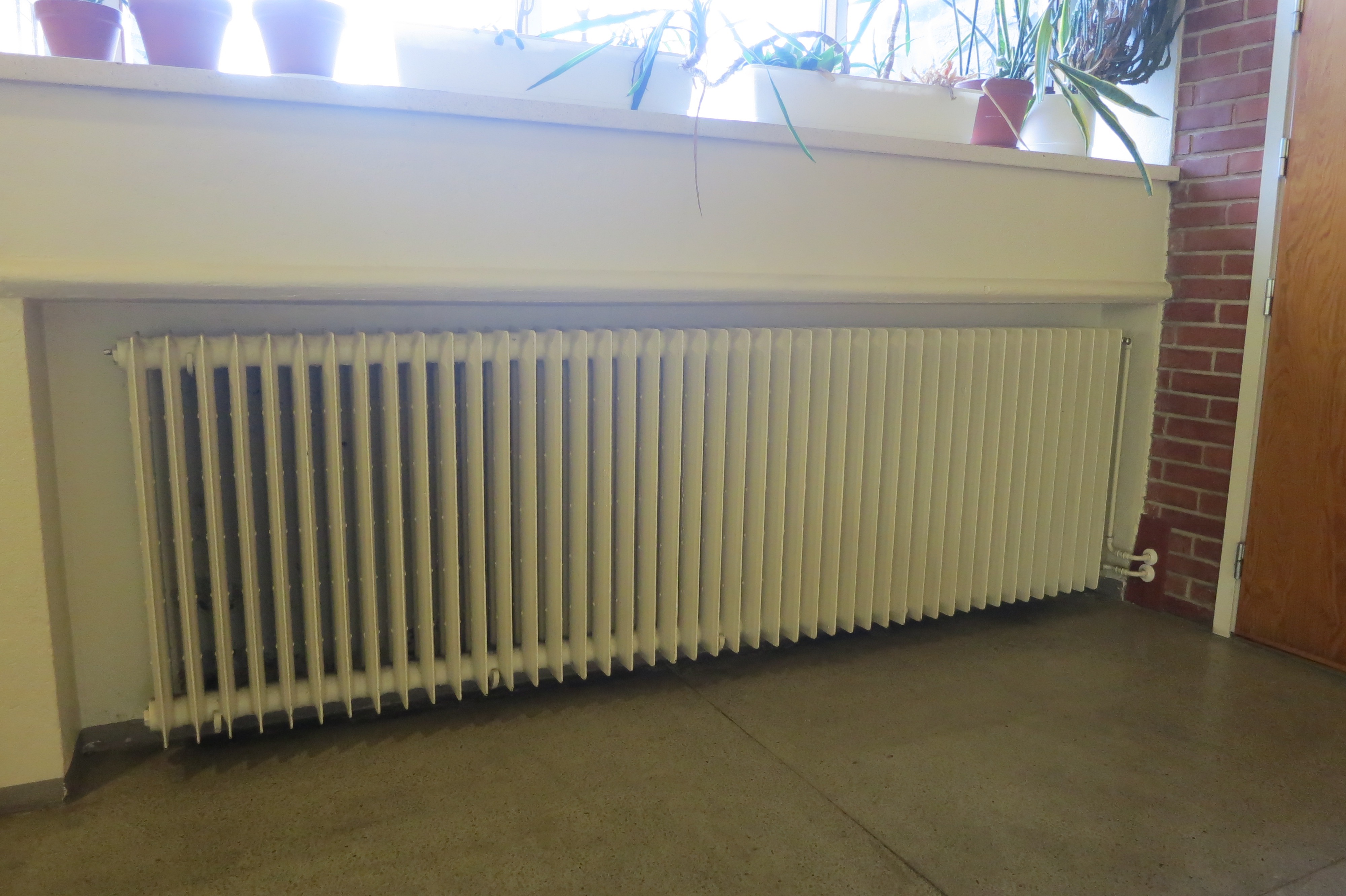 Pattereiden asentaminen ikkunoiden alle on kylmässä ilmastossamme hyvä ratkaisumalli, erityisesti painovoimaisen ilmanvaihdon yhteydessä. Korvausilma tulee vuotoina ikkunan raoista ja lämpenee patterin vaikutuksesta. 1950-luvun kouluissa vakiopaikoilla istuneet oppilaat kärsivät ikkunan viereen sijoitetuissa pulpeteissa vuoroin kuumina hehkuvista pattereista, vuoroin kylmävedosta ja keväisestä auringonpaahteesta ikkunoiden kautta. Patteriverkoston mitoituslämpötilat olivat paikkakunnan mitoitusulkolämpötilassa (esim. Helsinki -27 °C, Rovaniemi -37 °C) menovesi 90 / paluuvesi 70 °C. Pattereita säädettiin käsikäyttöisillä venttiileillä, joiden säätötarkkuus oli ”auki – kiinni”- tasoa. Termostaattiset patteriventtiilit tulivat koulurakennuksiin 1970-luvulla.