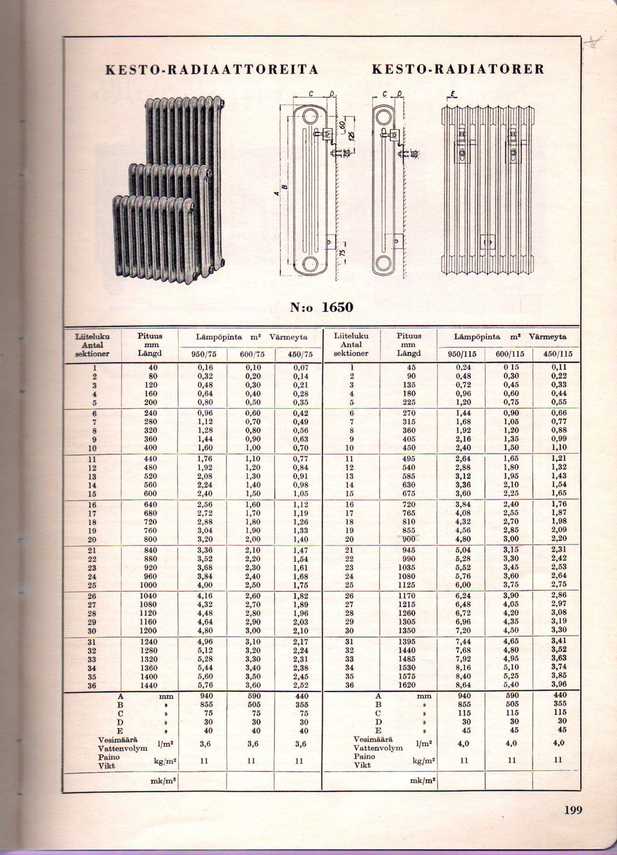 Kesto-radiaattorit, Yleisluettelo 1952.