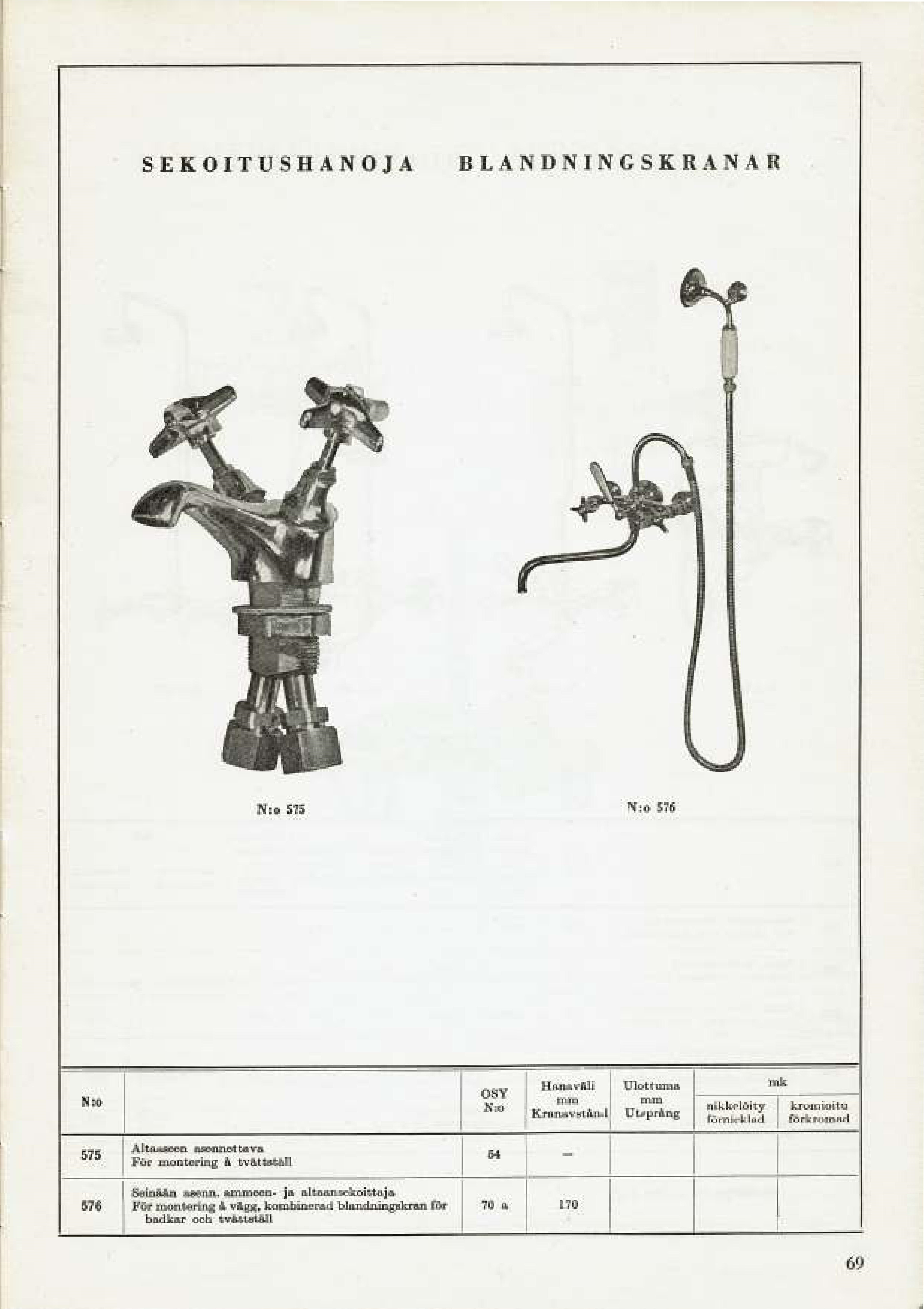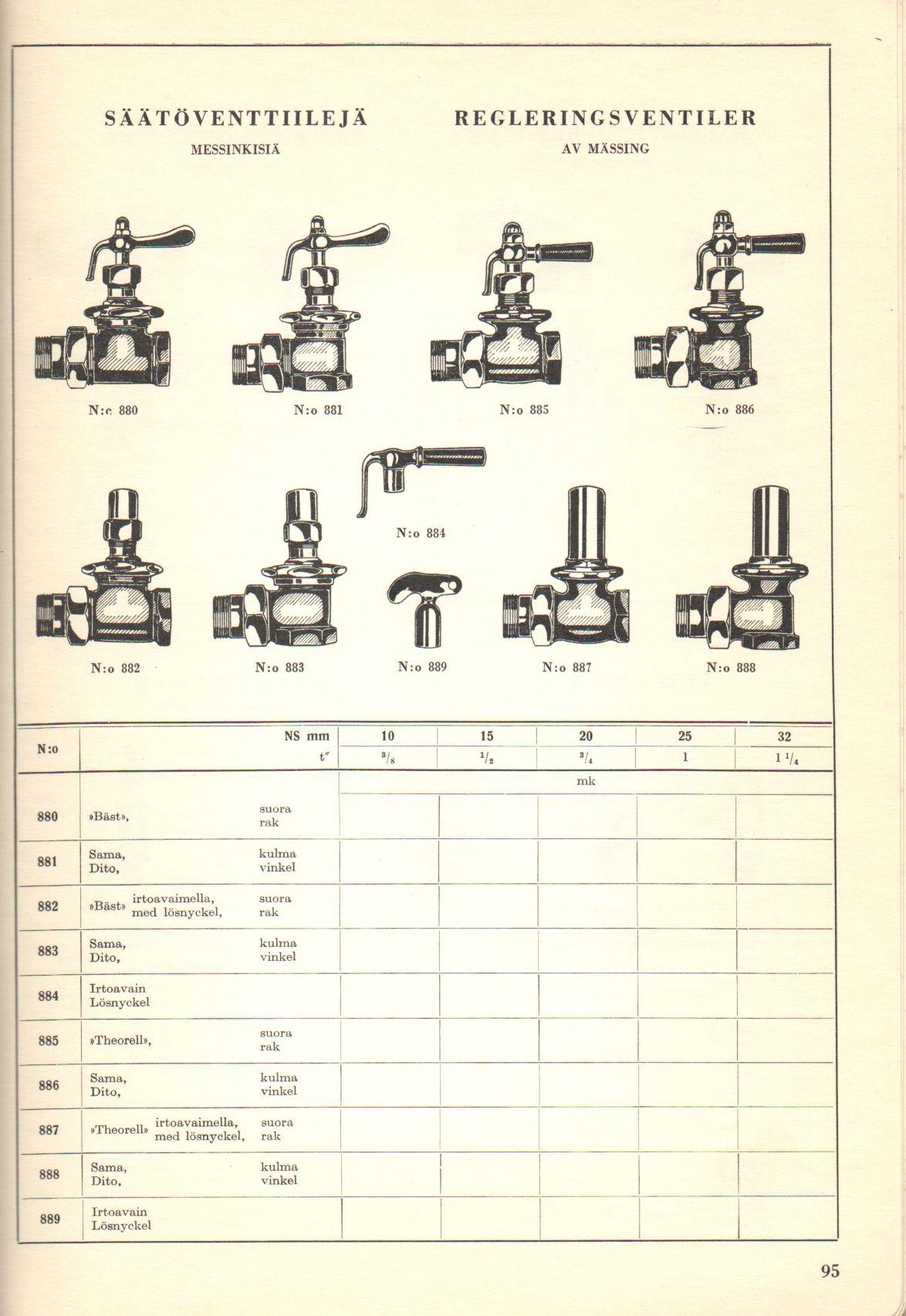 Yleisluettelo Vesi- ja lämpöjohtotarvikkeita 1952. Helsinki.