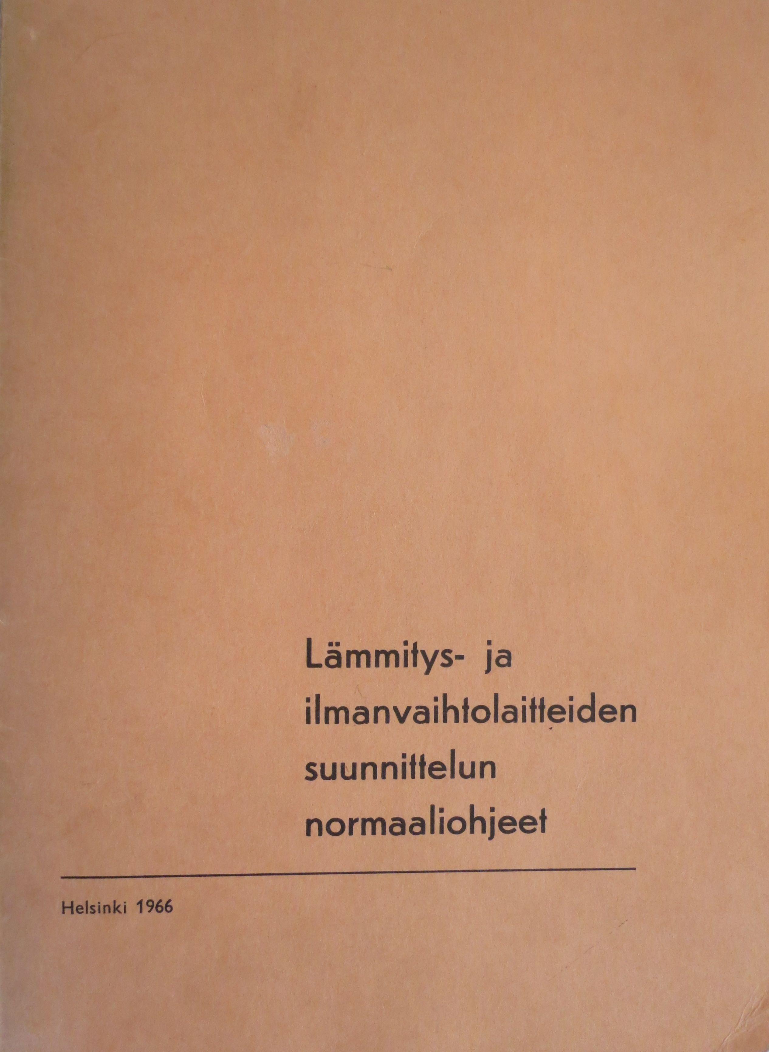 Lämmitys- ja ilmanvaihtolaitteiden suunnittelun normaaliohjeet, 1955. Helsinki: Lämpö- ja vesijohtoteknillinen yhdistys ry. Värme- och sanitetstekniska föreningen i Finland.