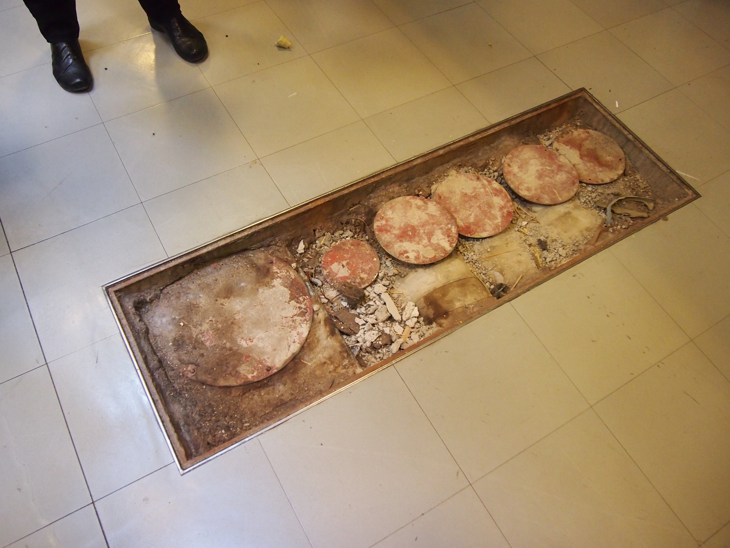 Roihuvuoren alakoulussa oli alun alkaen koneellinen ilmanvaihto. Alkuperäiset ilmanvaihtokanavat sijaitsivat ala- ja yläpohjissa. Uudet kanavat sijoitettiin alkuperäisillä periaatteilla, kokonaan eri mittakaavassa. Kuva: Mikko Lindqvist, Helsingin kaupunginmuseo.