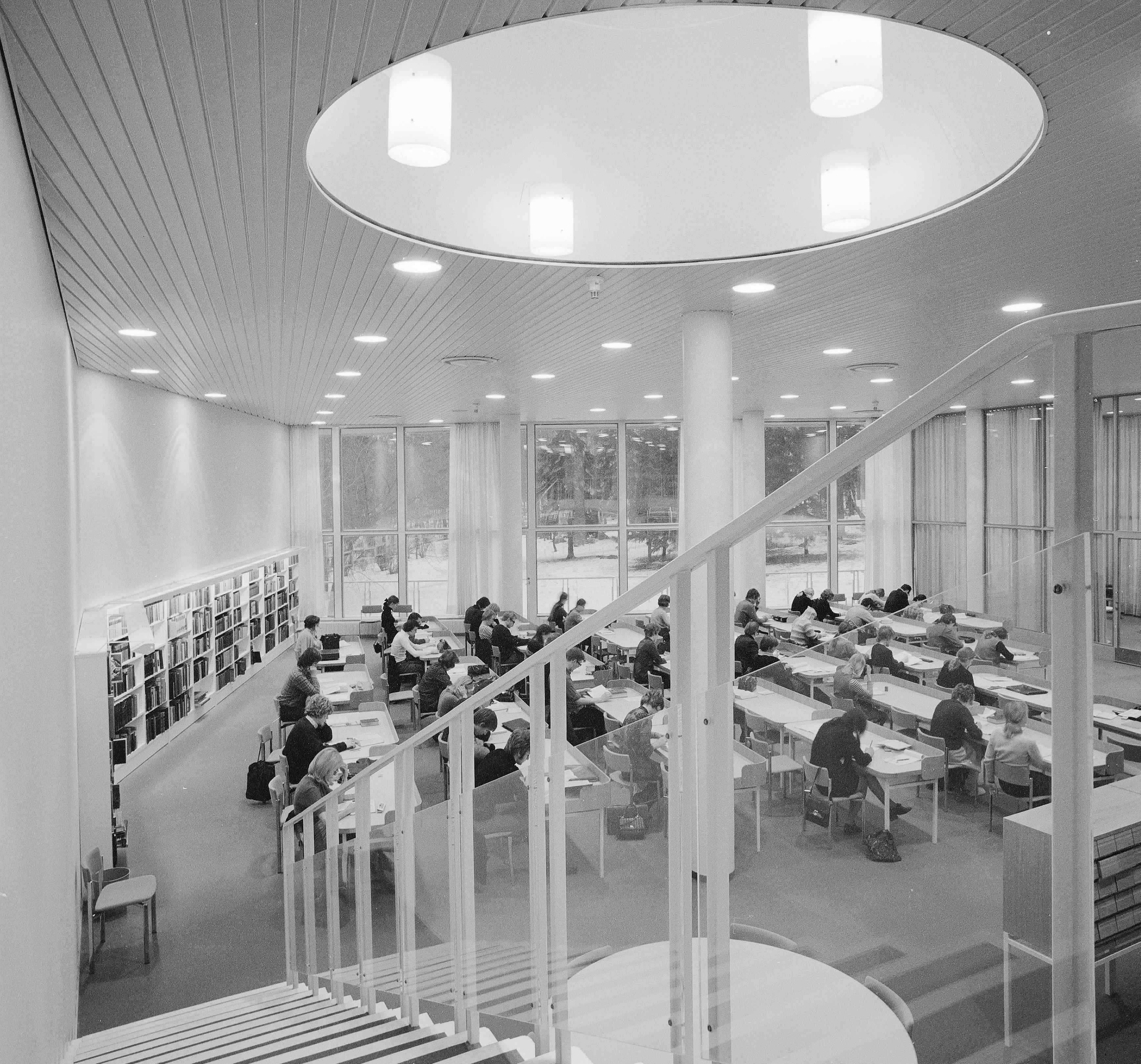 _Oik.: Töölön kirjasto, Helsinki (Aarne Ervi, 1970). Kuva: Teuvo Kanerva, Museovirasto.