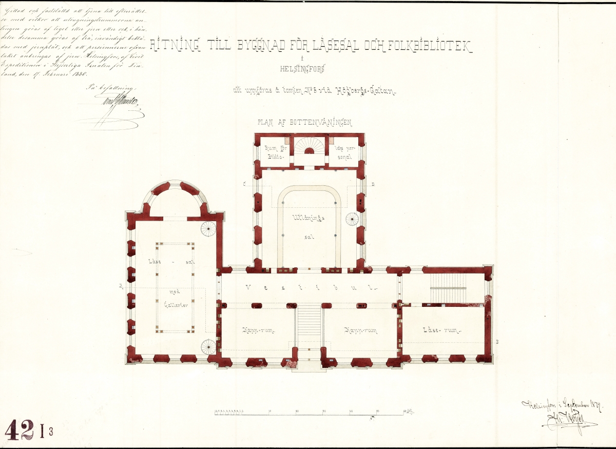 Ensimmäiset kirjastorakennukset Helsinkiin, Turkuun, Tampereelle ja Kuopioon