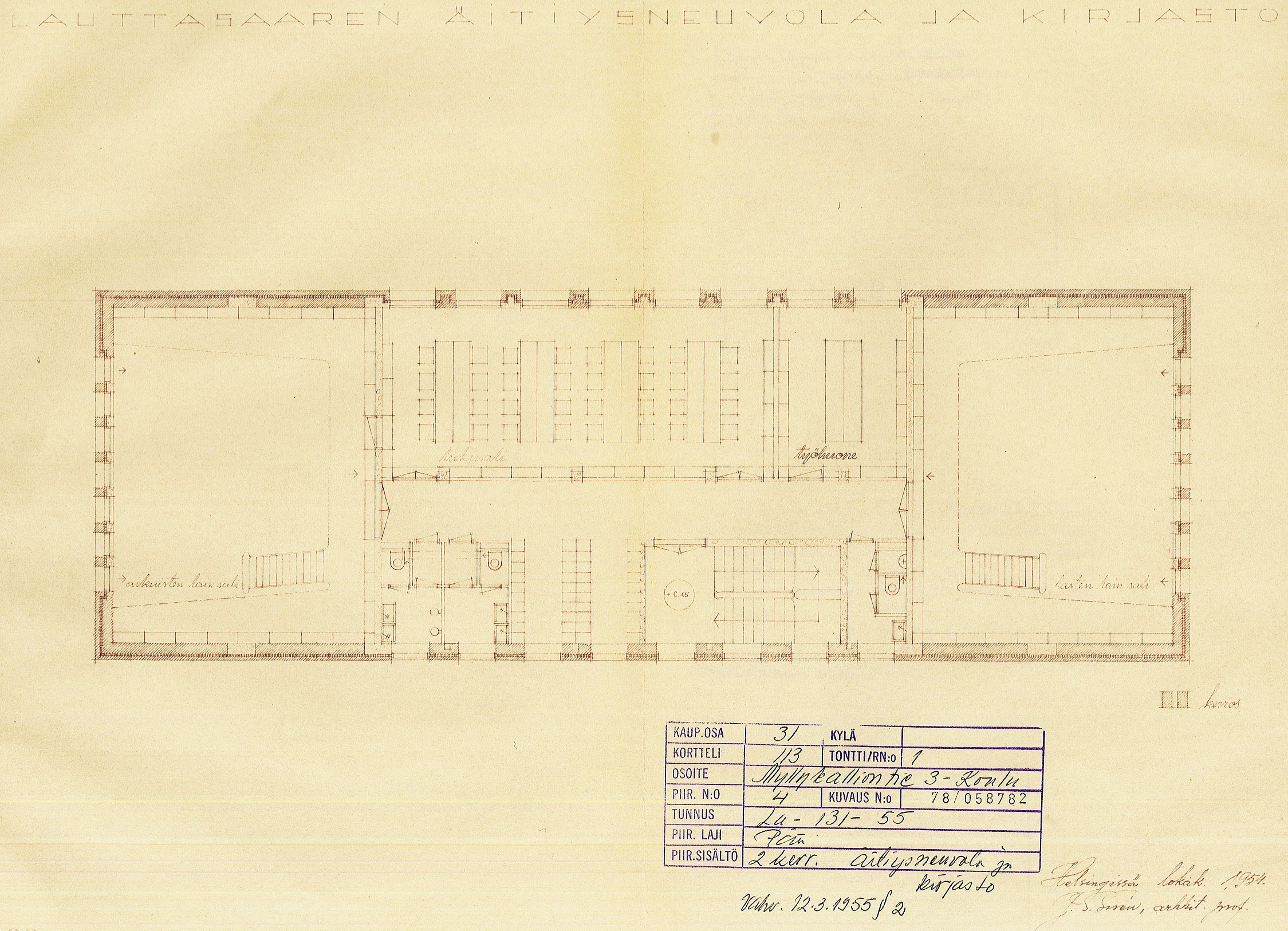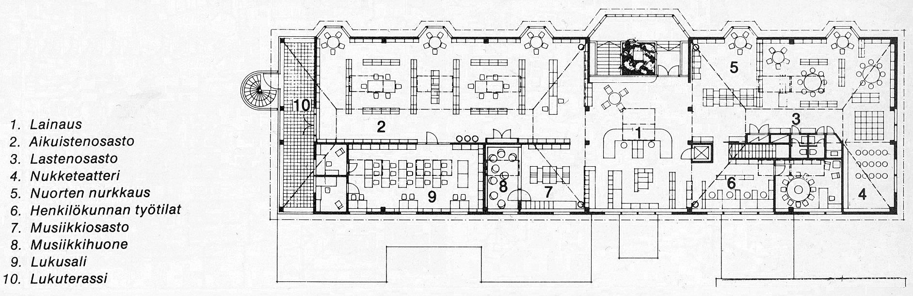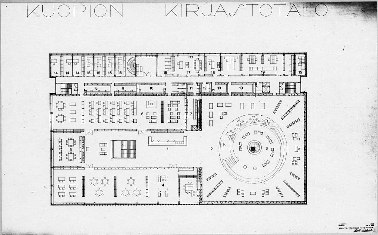 Kuvalähde: Arkkitehtitoimisto Pia Krogius 2012. Oulun pääkirjaston rakennushistoriaselvitys. OUKA Pääkirjasto RHS kirjastolle.pdf, s. 27.