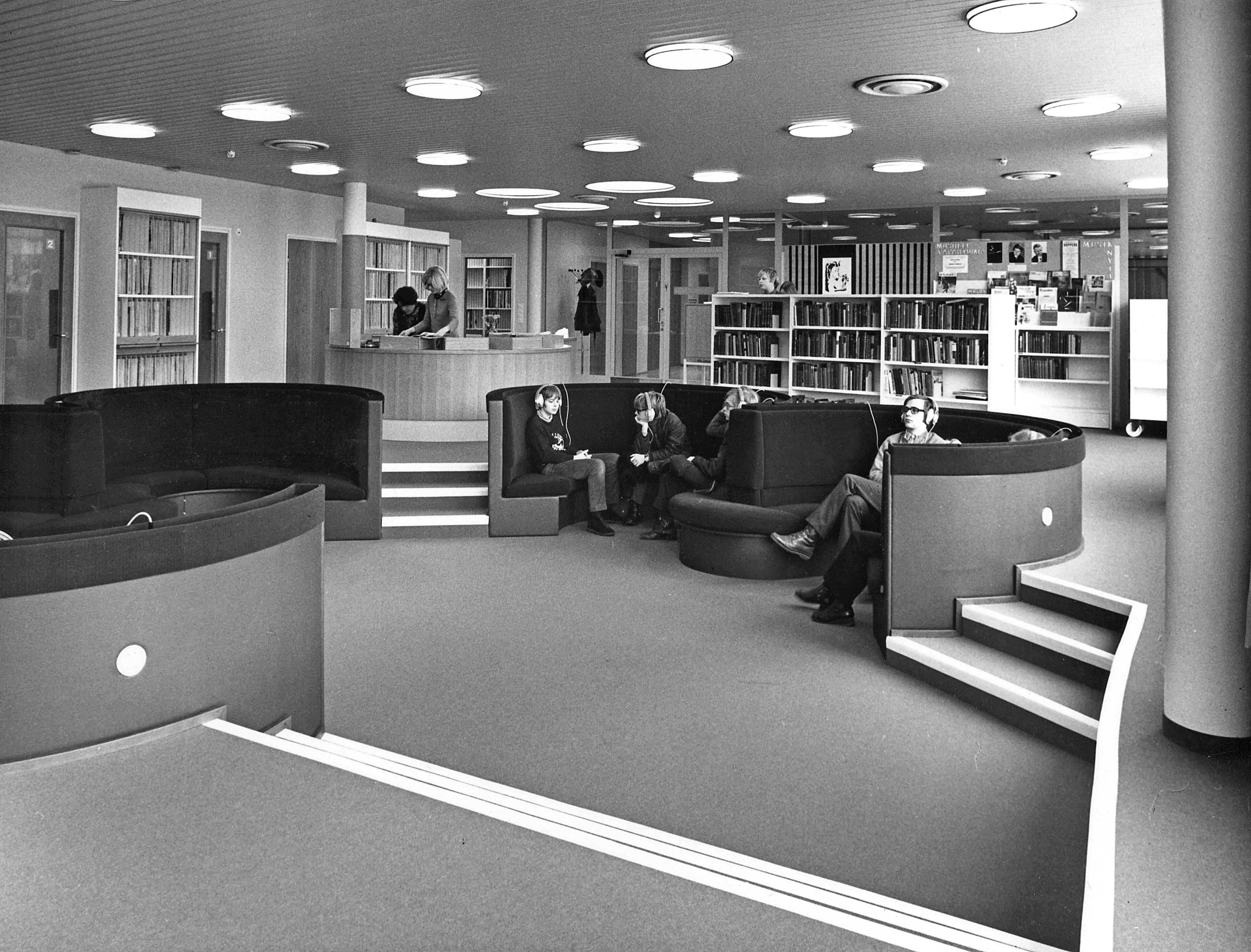 Kaupunkien uusiin lähiöihin tarvittiin samaan aikaan lisää kirjastopalveluita ja yhteisöllisyyttä ruokkivia kokoontumispaikkoja. Pienissä 1970-luvun lähikirjastoissa näkyi pyrkimys olohuonemaiseen kodikkuuteen. Niihin kalustettiin matalien kirjahyllyjen rajaamia saarekkeita ja pehmeitä ja värikkäitä istuskeluryhmiä.