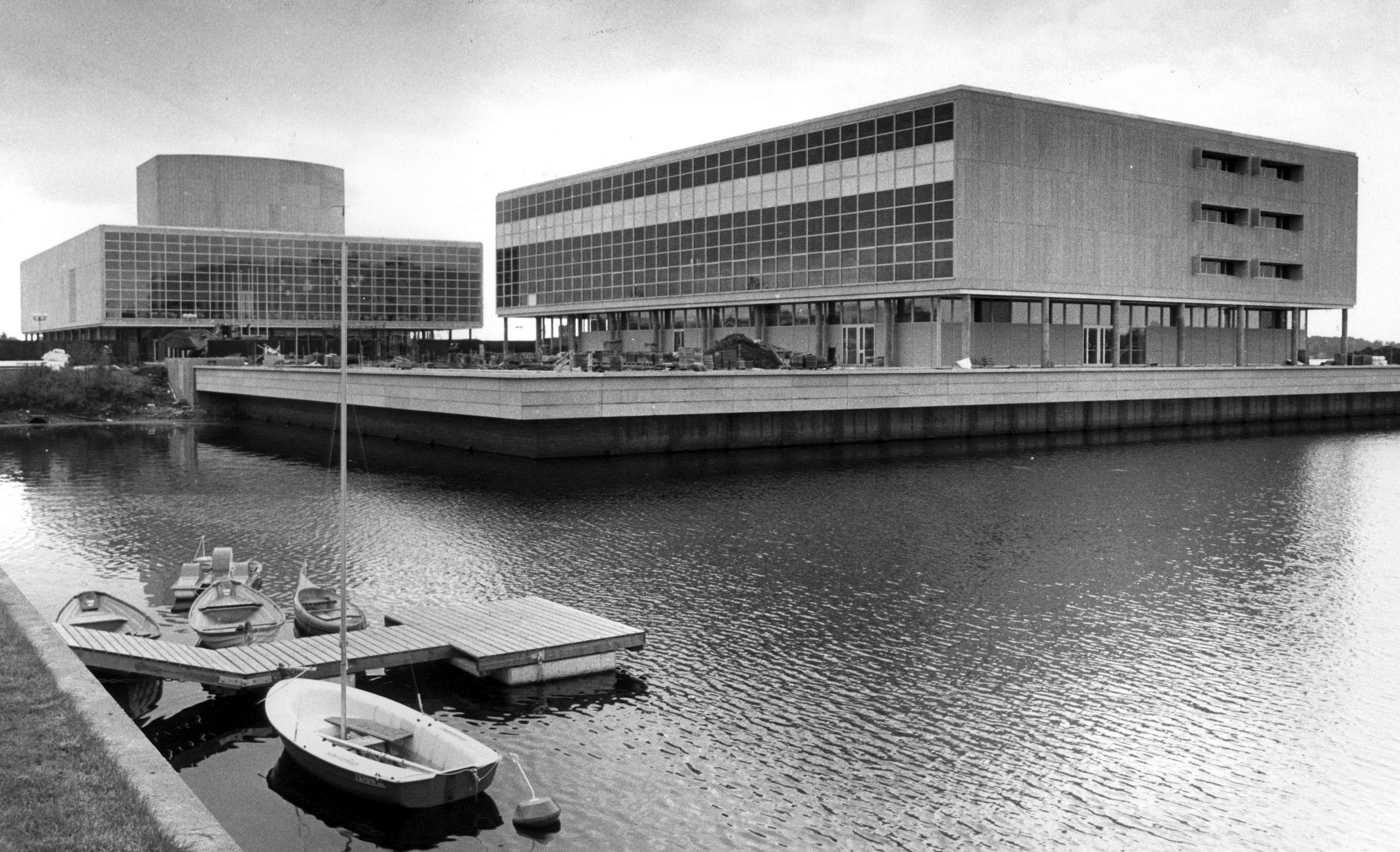 _Oik.: Oulun pääkirjasto (Marjatta ja Martti Jaatinen, 1981). Taustalla teatteritalo. Kuva: Kaleva, Journalistinen kuva-arkisto, Museovirasto.