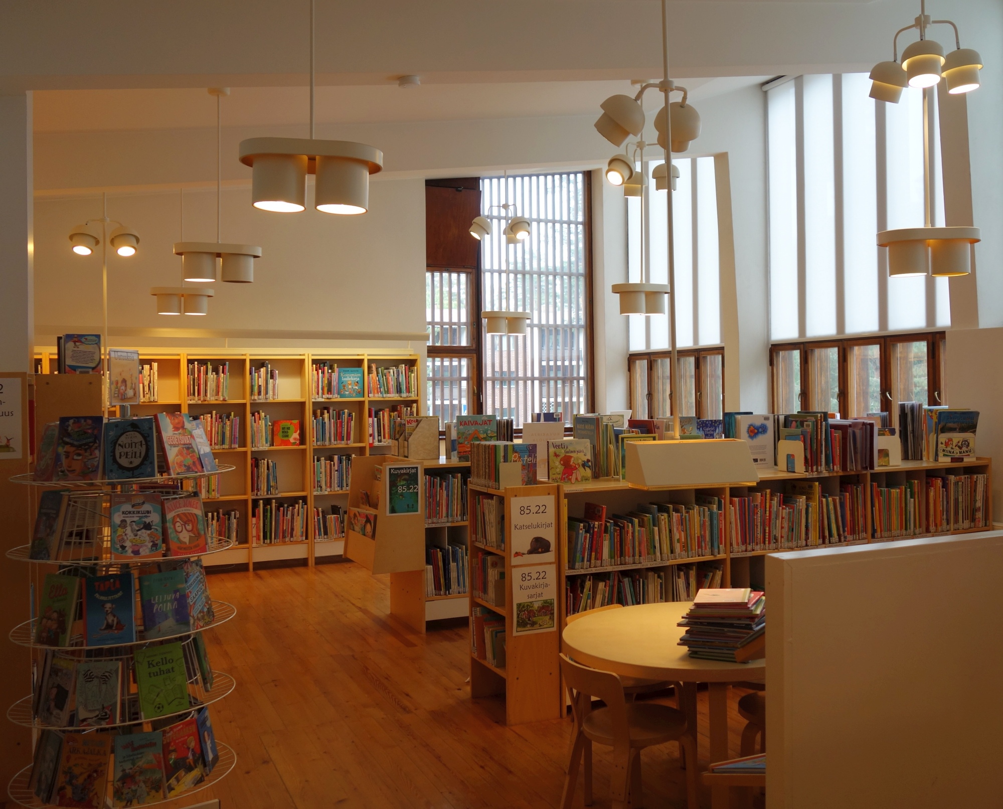 Kirjastojen sisustukset kalustuksineen ovat viimeisteltyjä ja suunniteltiin valaisimia, mattoja ja ikkunaverhoja myöden Aallon toimistossa. Lastenkokoiset Artek-jakkarat ja pöydät palvelivat pieniä käyttäjiä.