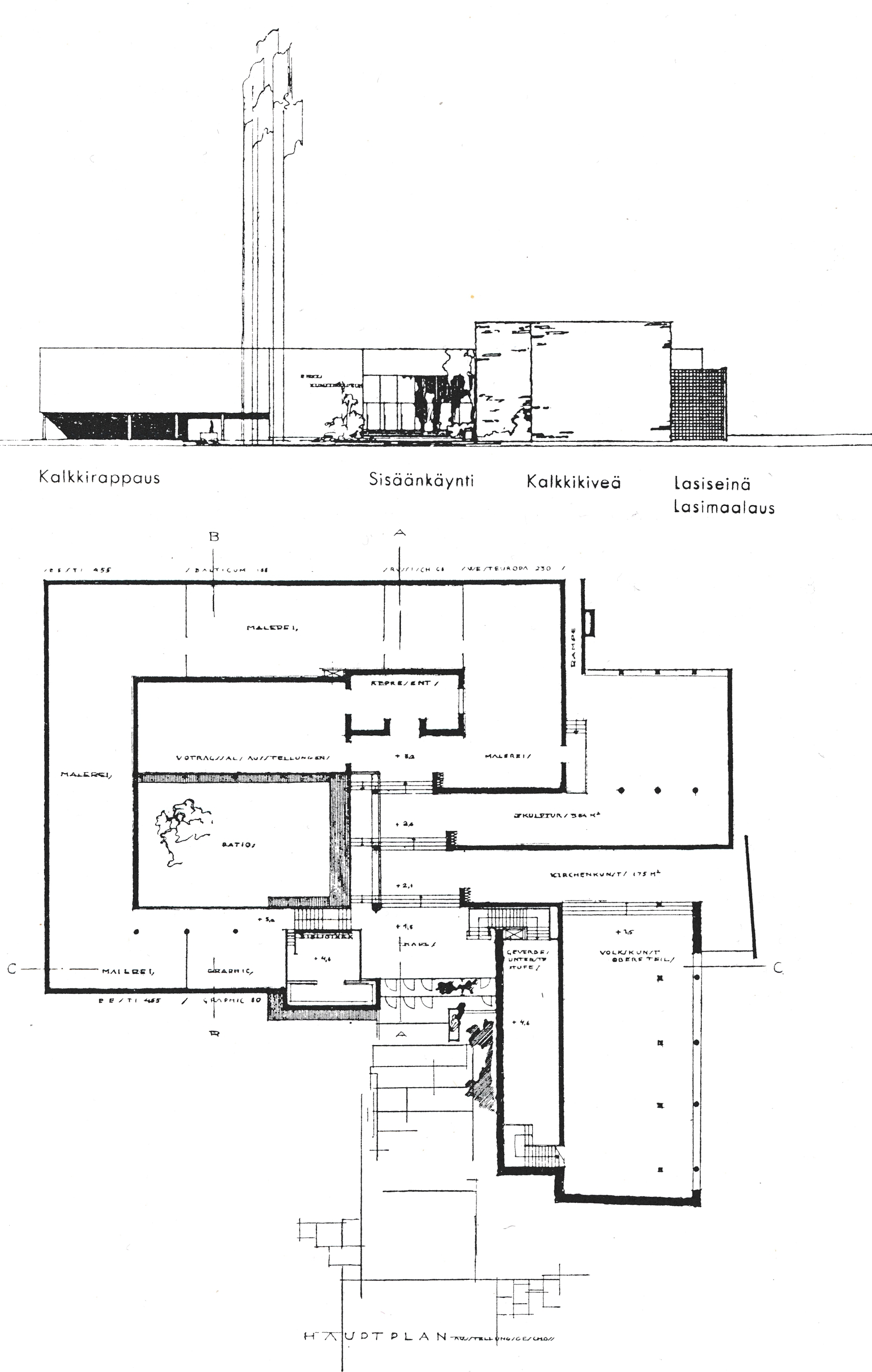 Tallinnan taidemuseon kutsukilpailu järjestettiin vuosina 1936–37. Arkkitehti Alvar Aallon modernistinen kilpailuehdotus esiteltiin tuoreeltaan yhdessä virolaisten voittajien kanssa Päevalehden etusivulla sekä Arkkitehti-lehdessä.[20] Aallon suunnitelma on Vanhankaupungin ja sataman väliseen puistoon vapaasti sijoitettu, ulkoasultaan yksinkertainen, valkeaksi rapattu, matala ja suoraviivainen rakennus.