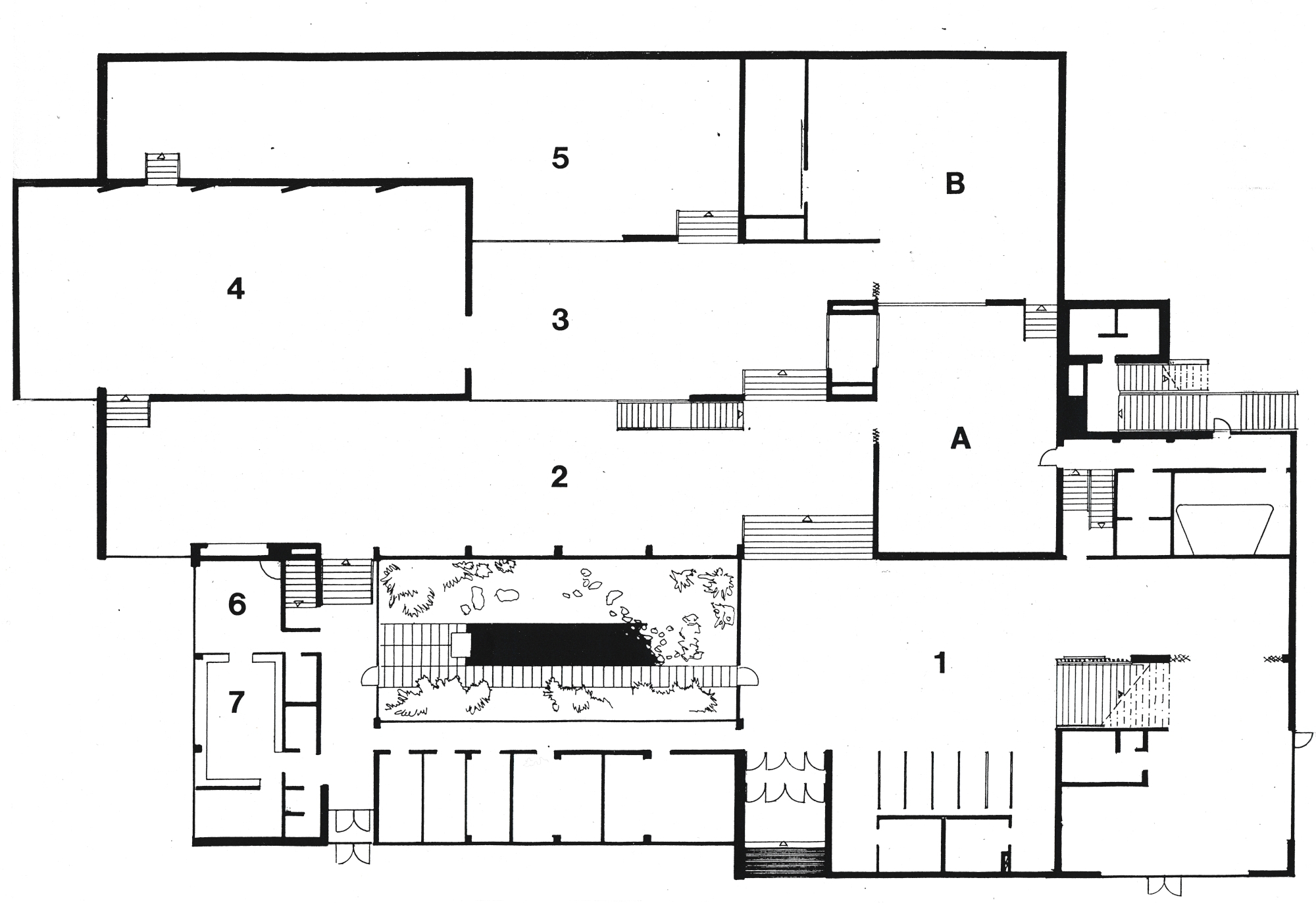 Uutta oli sisätilan rikas ja herkkä jäsentely. Sen pohjakaava on ydin ja satelliitit -ratkaisu. Jo aulasta saa selkeän kuvan museon kokonaisuudesta. Aulasta on pääsy suoraan kaikkiin näyttelytiloihin, jotka kohoavat portaiden kytkeminä terassimaisesti – Aalto puhuu ”skala-motiivista”. Koko museon läpi on mahdollista kulkea myös johdonmukaisessa järjestyksessä. Pieni sisäpiha avautuu suoraan ympäröivään puistoon. Ylävalo on ratkaistu tiheään sijoitetuin heijastavin lasikartioin, joiden kautta valo jakautuu tasaisesti koko tilaan. Veistossaleissa on myös sivuvaloa antavat lasiseinät.[21]