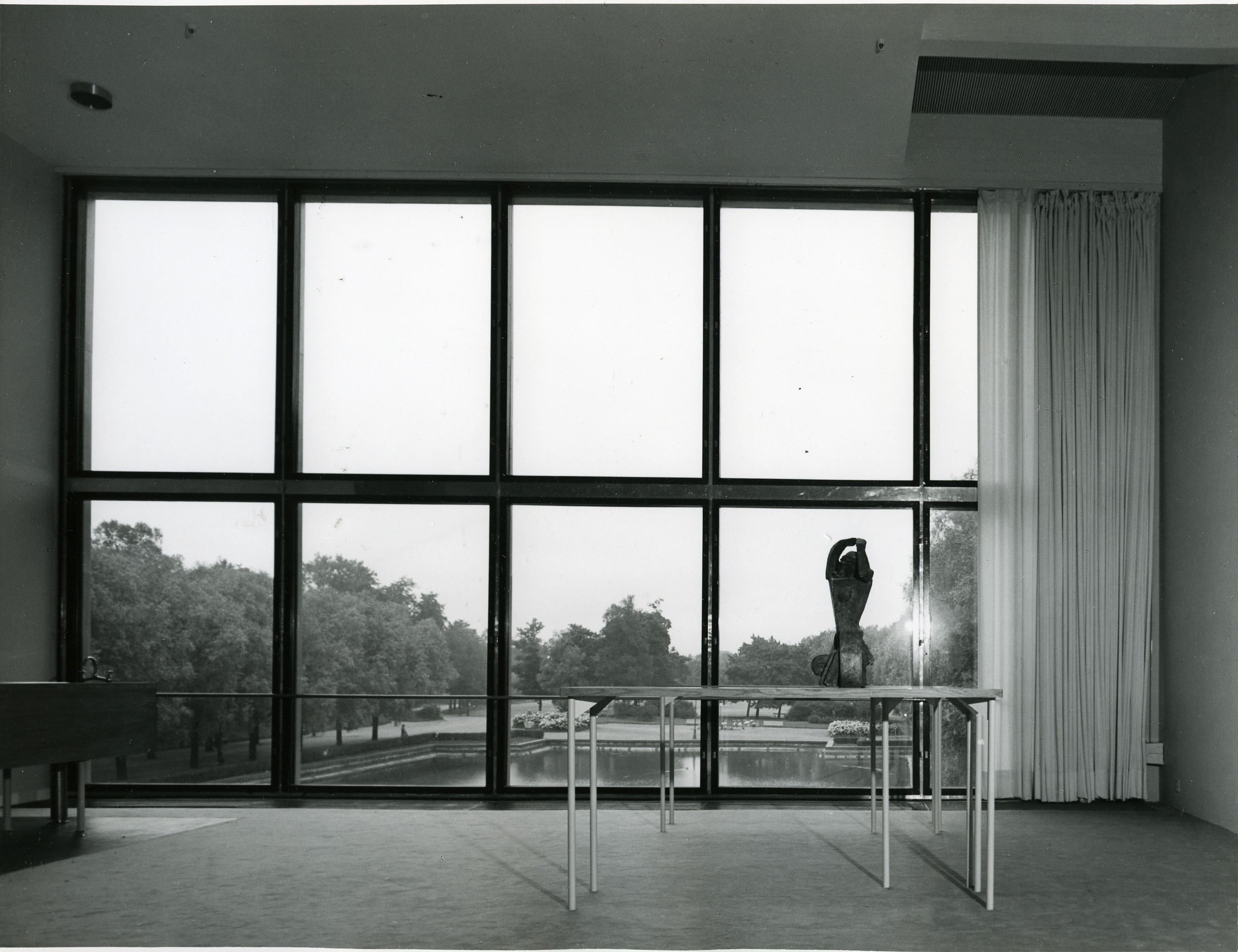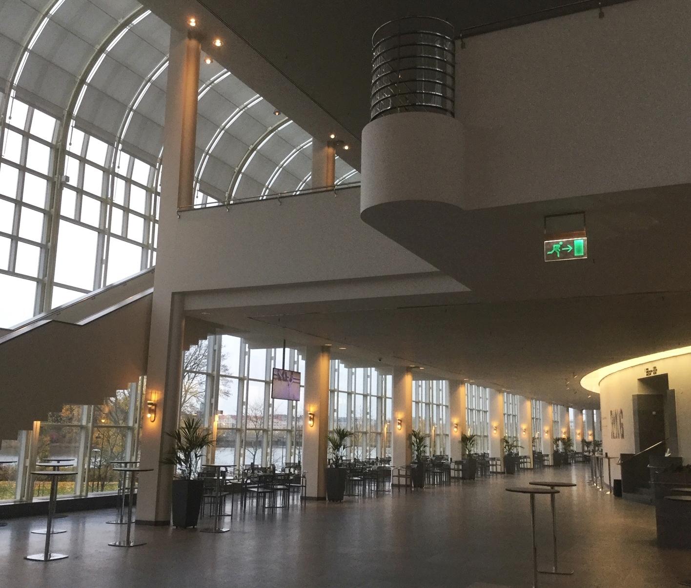 _Oik.: Näkymä Pienen näyttämön lämpiöstä puistoon. Kuva: Siren Arkkitehdit.