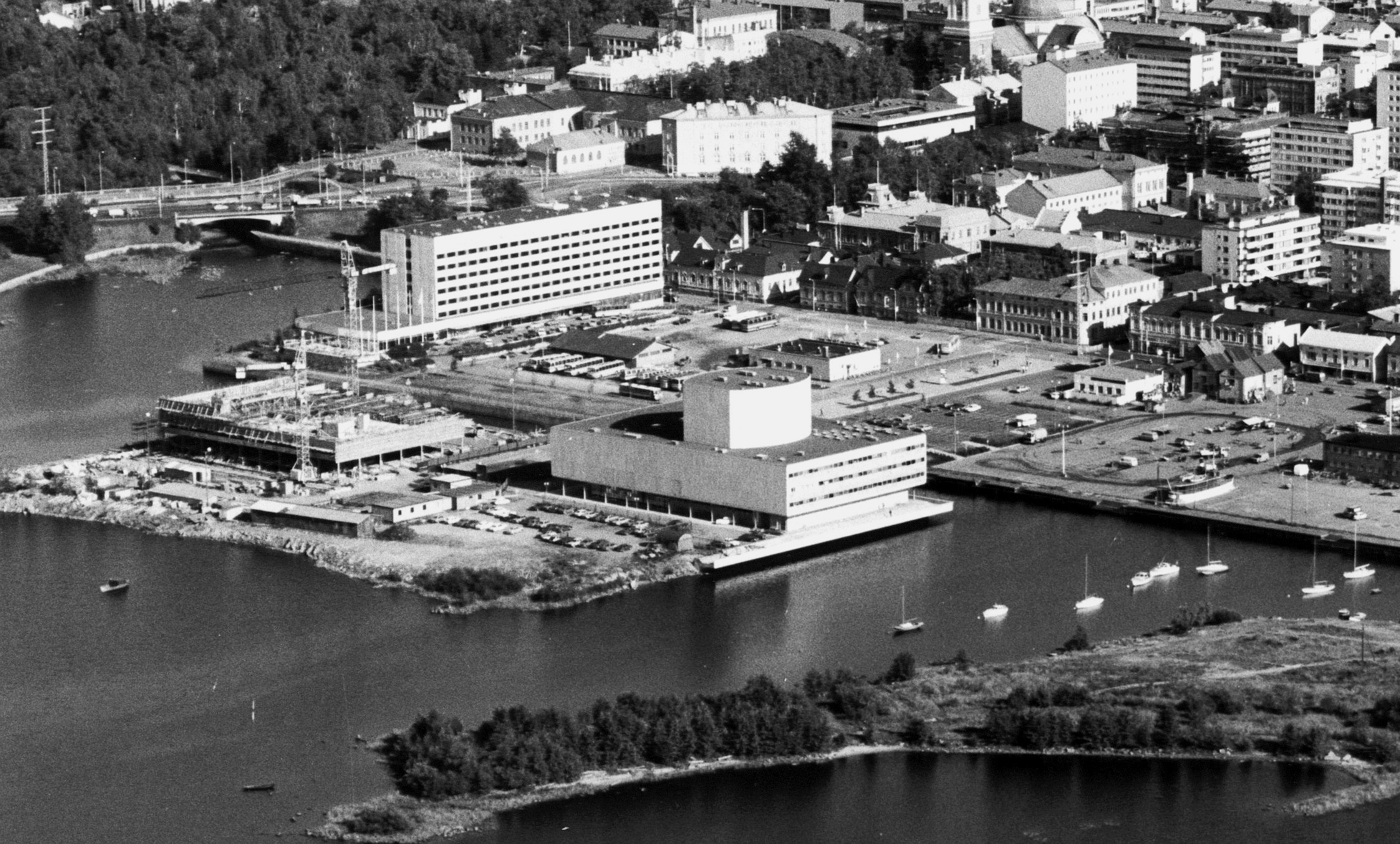 Helsingin Kansanteatterin ja Helsingin Työväenteatterin vaiheittaisesta yhdistämisestä syntyi lopullisesti Helsingin kaupunginteatteri 1965. Arkkitehtuurikilpailu oli viritetty jo tätä ennen, 1961. Voittaneeseen Arlecchino-ehdotukseen perustunut kaupunginteatteri valmistui 1967.[28]