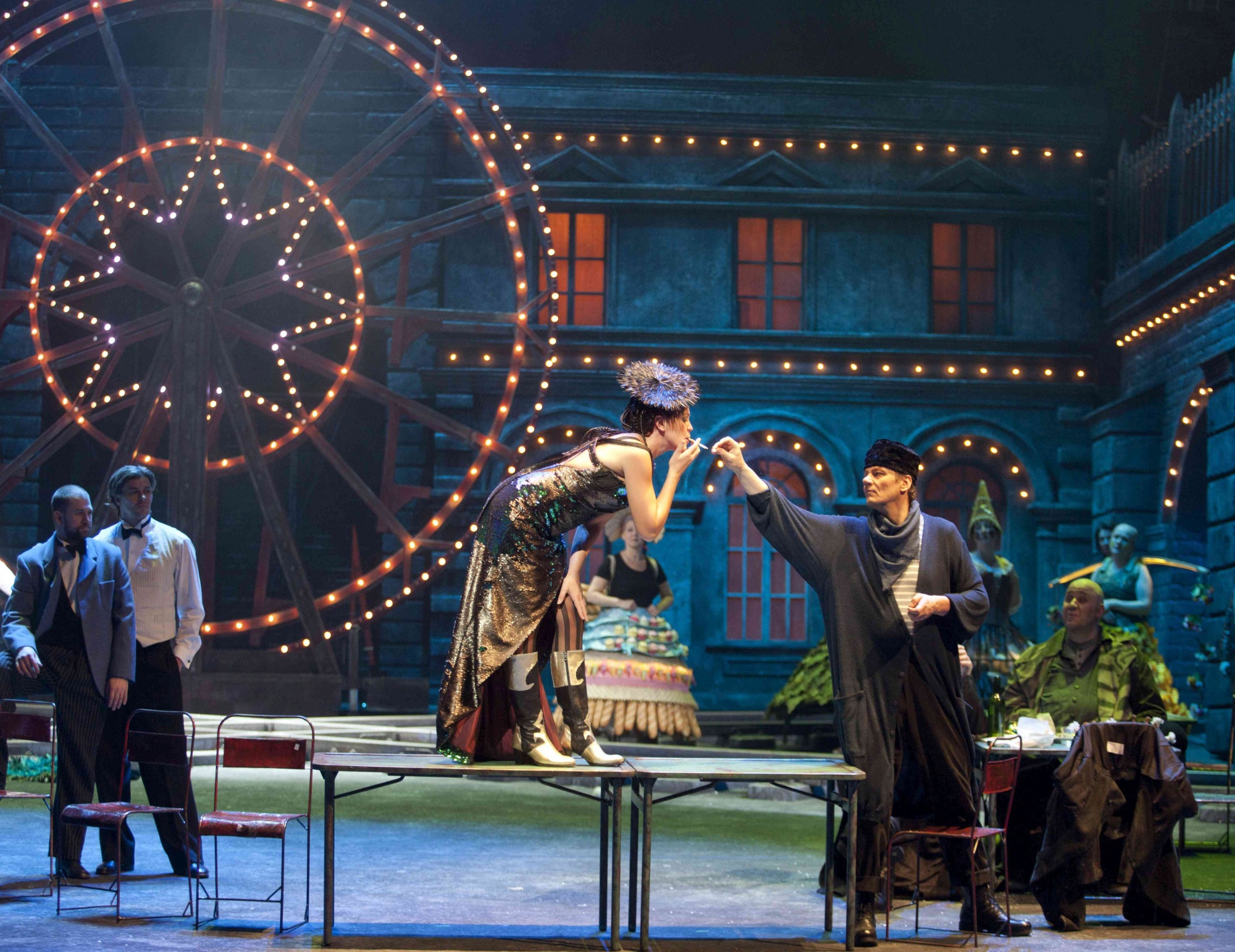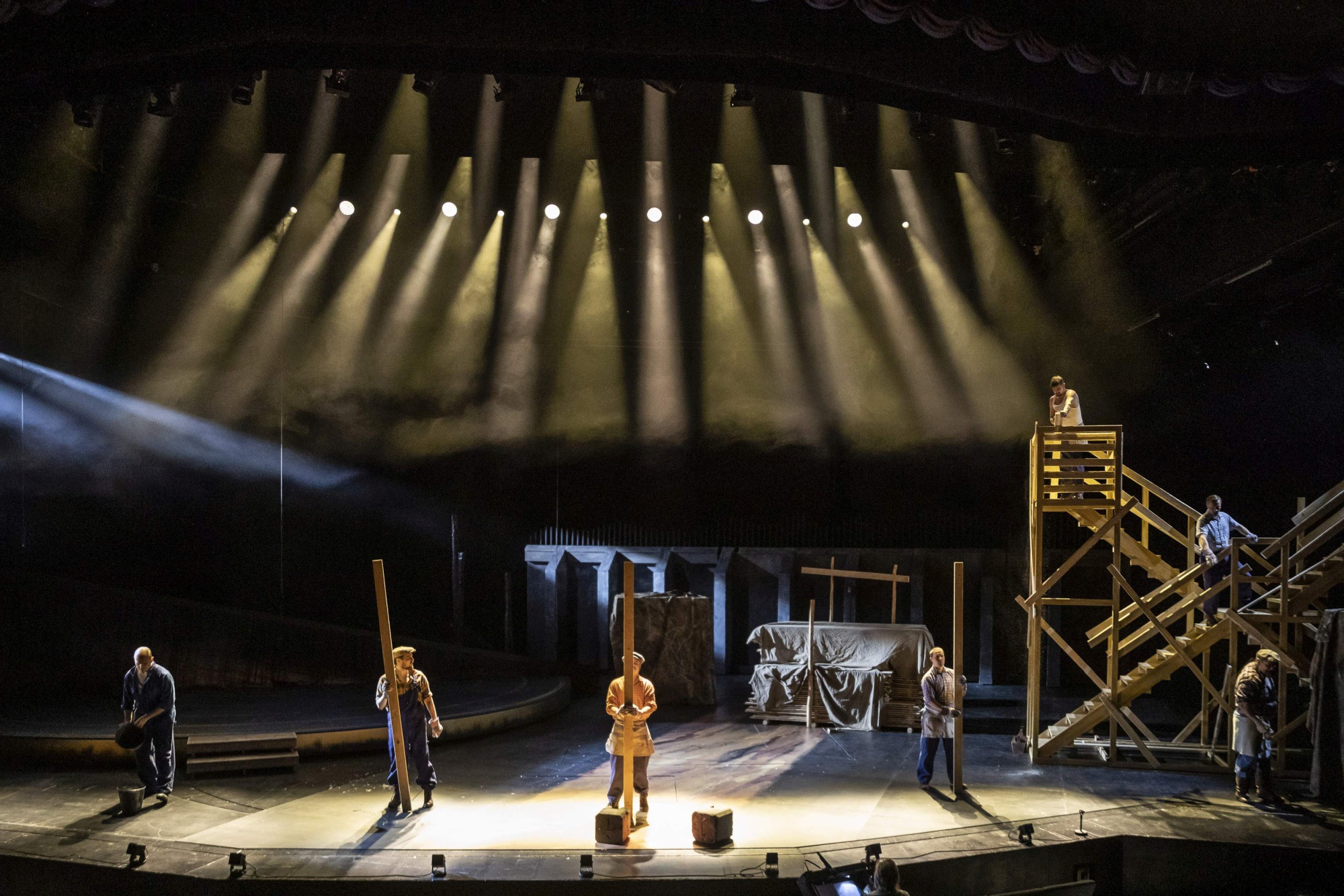 Näyttämöllä on hydraulisia nostimia. Lisäksi mihin tahansa kohtaan näyttämöä voidaan tuoda ilmatyynyillä kulkeva pyörönäyttämölevy, halkaisijaltaan 12 metriä. Koska suurella näyttämöllä esitetään myös musikaaleja, on orkesteritila akustisista syistä sijoitettu kokonaan katsomon puolelle.[42] Kattamalla orkesterisyvennys saadaan useampi tuolirivi.