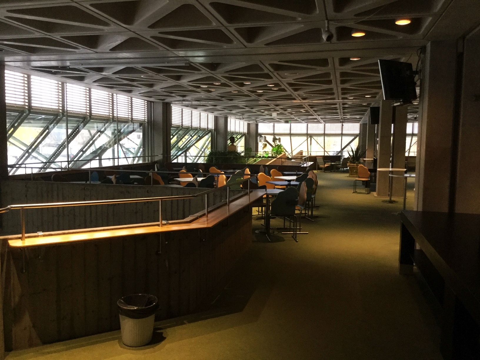 Eteis- ja lämpiötilat ovat sisäänkäyntitorin puolella. Torin tasolla teräskannattimien sateenvarjokatos muodostaa poimuilevan seinämän lasiprismojen kanssa. Vastapäinen aaltoileva vaatesäilytystiski toimii tehokkaasti yleisövirtojen suhteen. Lämpiötilojen tunnelma on kodikas, lähes vastakohta talon ulkoiselle ilmeelle. Tiloja on jäsennetty pienemmille ja suuremmille ryhmille. Materiaalit, värit ja monet taideteokset tuovat lämpöä. Yrjö Kukkapuron kalusteet ovat pääosin säilyneet.