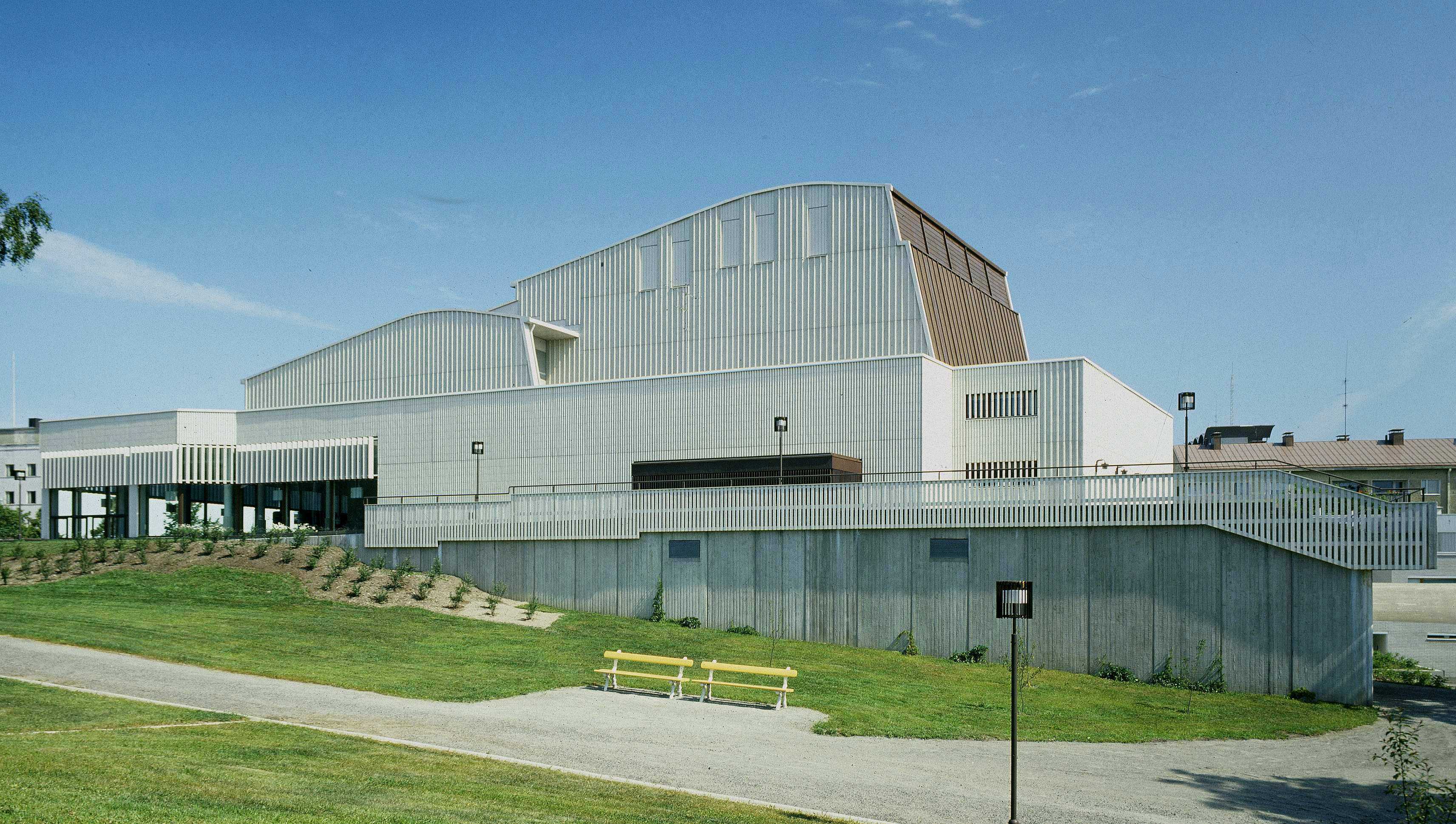 Tilavuudeltaan ja paikkaluvultaan suuri kunnallinen teatteritalo rakennettiin ydinkeskustan laidalle. Ympäristö kasvoi kulttuurikeskukseksi kirjastotalon (1990) ja aikuisopiston myötä. Teatterisuunnitelma perustui arkkitehtuurikilpailunvoittoon 1973 ja valmistui arkkitehtitoimisto Pekka Salminen Ky:n nimissä 1983.[37] Salminen avusti jo Helsingin kaupunginteatterin suunnittelussa.[38]