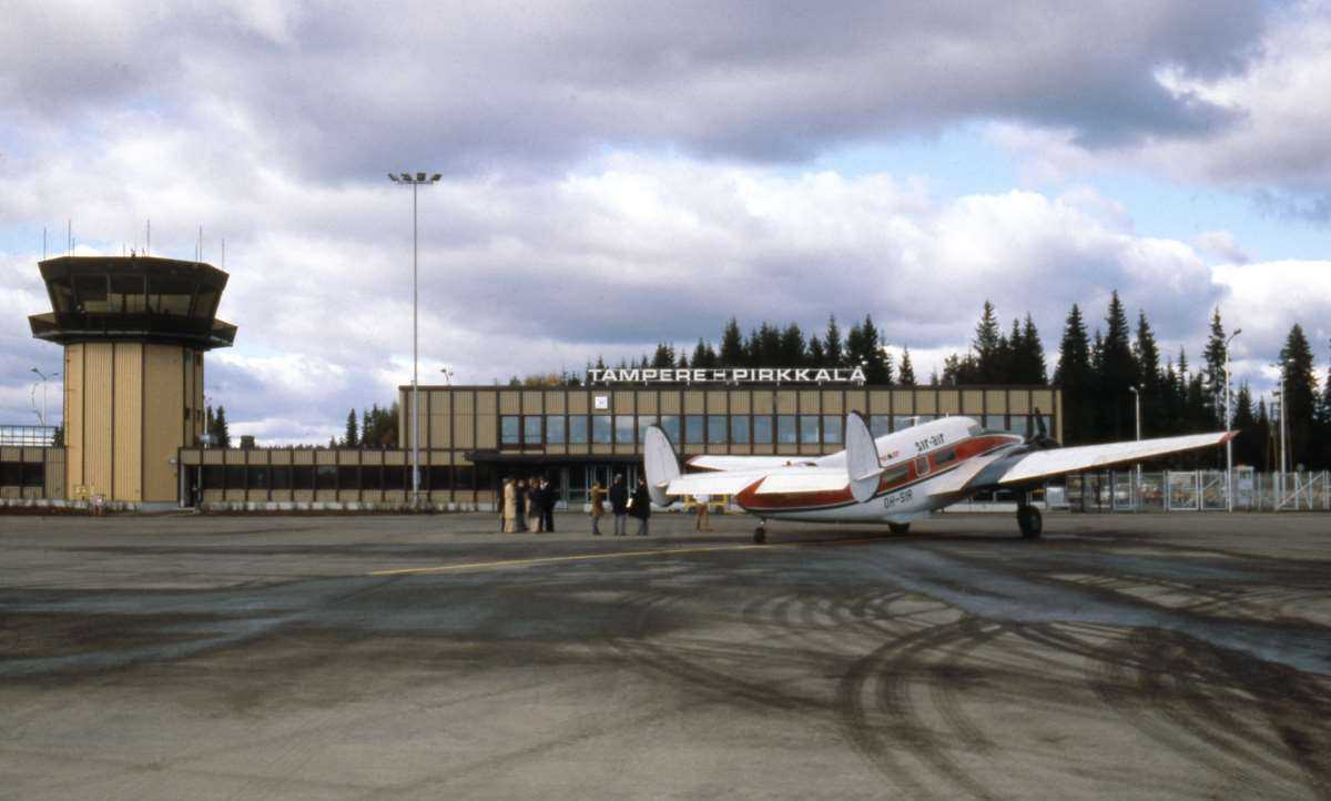(26 Tampere-Härmälän lentokenttä palveli yleisilmailua vuoteen 1982, jolloin se lakkautettiin ja Härmälän kiitotie muuttui urheilu- ja messukeskus Pirkkahallin parkkipaikaksi. Bertil Strömmerin vuonna 1942 suunnittelema asemarakennus on kuitenkin yhä pystyssä. Pirkkalan lentokentälle siirtyivät myös Satakunnan lennoston 3. laivue sekä Etelä-Suomen lennonjohto. Vuonna 1996 Pirkkalan kentälle rakennettiin uusi, Arkkitehtikonttori Petri Pussisen suunnittelema terminaali ja vanha terminaali muutettiin rahtiterminaaliksi. Suomen lentoasemat 1972–1981, 12-13; Uolamo 2004.