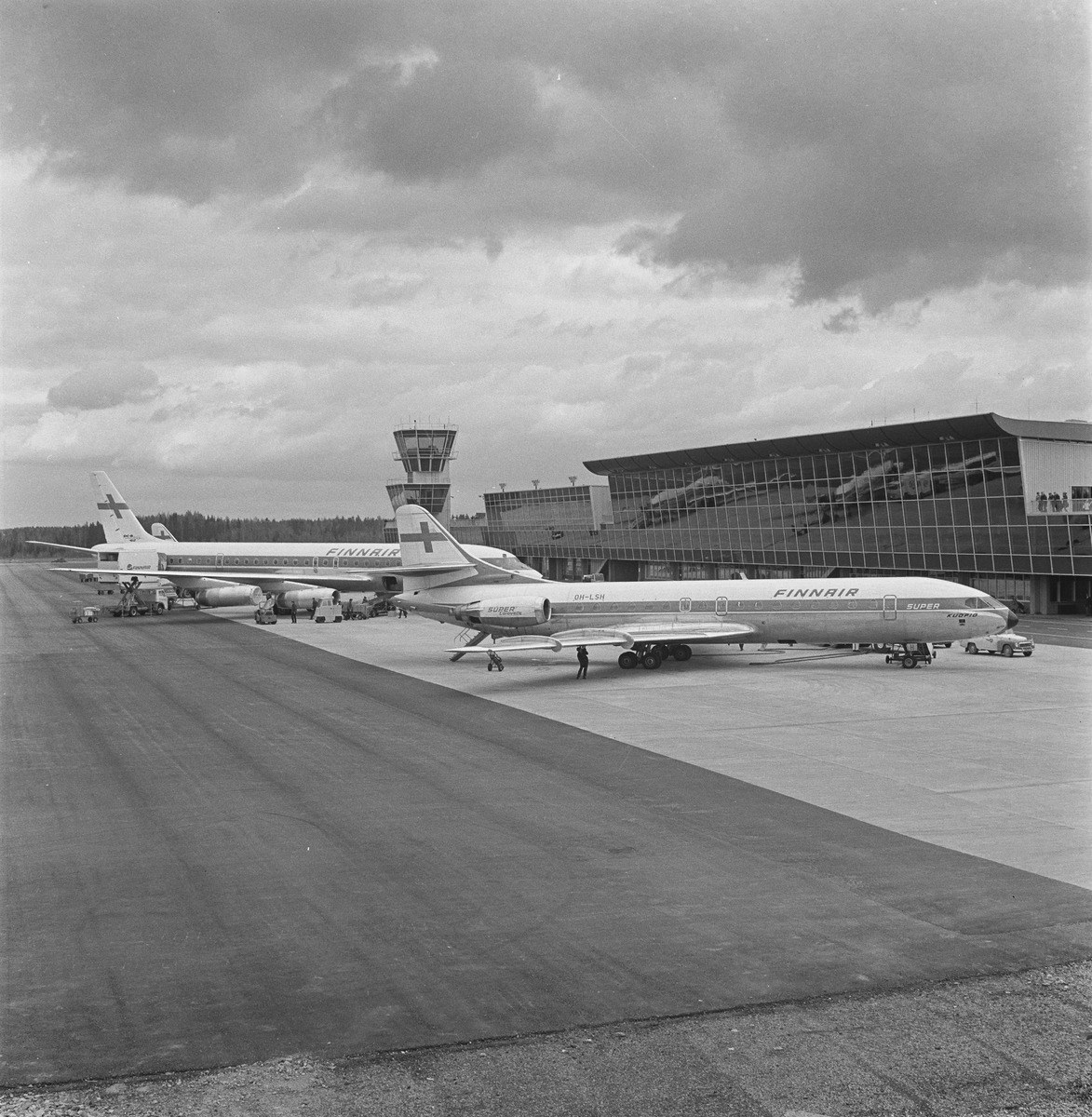 Suihkukoneliikenteeseen siirryttiin 1960-luvulla. Finnair lensi Caravelle-koneilla Hampuriin, Lontooseen ja Moskovaan, Super Caravelle -koneilla Milanoon ja Pariisiin sekä DC-8 koneella ensimmäisen kerran New Yorkiin vuonna 1969.(18 Lennonvarmistuksen suunnistuslaitteet sekä lähestymis- ja apulaitteet kehittyivät, kun lentonopeudet kasvoivat. Siviili- ja sotilaslennonvarmistusjärjestelmä myös yhdistettiin tässä vaiheessa Etelä-Suomen ja Pohjois-Suomen lennonvarmistuskeskuksiksi. Suihkukoneita varten kiitoteitä kestopäällystettiin, pidennettiin 2000–2500 metriin sekä varustettiin mittarilaskeutumisjärjestelmällä, suurtehoisella kiitotievalaistuksella, lähestymisvaloilla, liukukulmavaloilla sekä talvikunnossapidon vaatimilla harjapuhaltimilla. Kentille myös lisättiin sekä matkustajaliikenteen että kiitoteiden kunnossapidon vaatimia rakennuksia. Asemarakennuksen ja muiden rakennusten välille muodostui selkeä hierarkia.