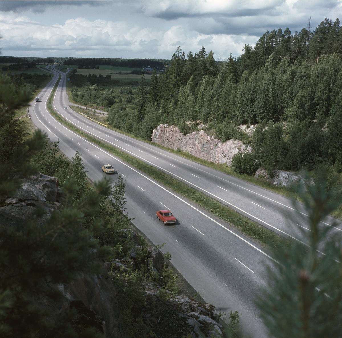 Moottoritierakentamisen käynnisti Turun ja Helsingin välisen moottoritien osana vuonna 1962 valmistunut Tarvon moottoritie eli Tarvontie, joka oli pitkään kaivattu läntinen sisääntuloväylä pääkaupunkiin. Turun liikenteen vuoksi se oli myös osa valtatieverkostoa, mistä johtuen tiellä ja sen maisemalla oli sekä paikallista että kansallista merkitystä. Tarvontien tavoitteena oli erityinen muoto, jossa loiviksi muotoillut tien kaarteet ohjasivat kuljettajaa kiinnittämään huomiota maisemaan.(11 Tarvontielle esitettiin jopa rajoittamatonta ajonopeutta.(12 Muotoon liittyvässä tavoitteessa onnistuttiin ainakin ilmakuvista päätellen. Vaikka Kauniaisissa ajorataa jouduttiin louhimaan kallion läpi ja Espoon Kirkkojärvi kuivatettiin, moottoritie vietiin lopulta hienovaraisesti kaarrellen ulos Helsingistä kansallisesti merkittävän Espoonjokilaakson poikki.
