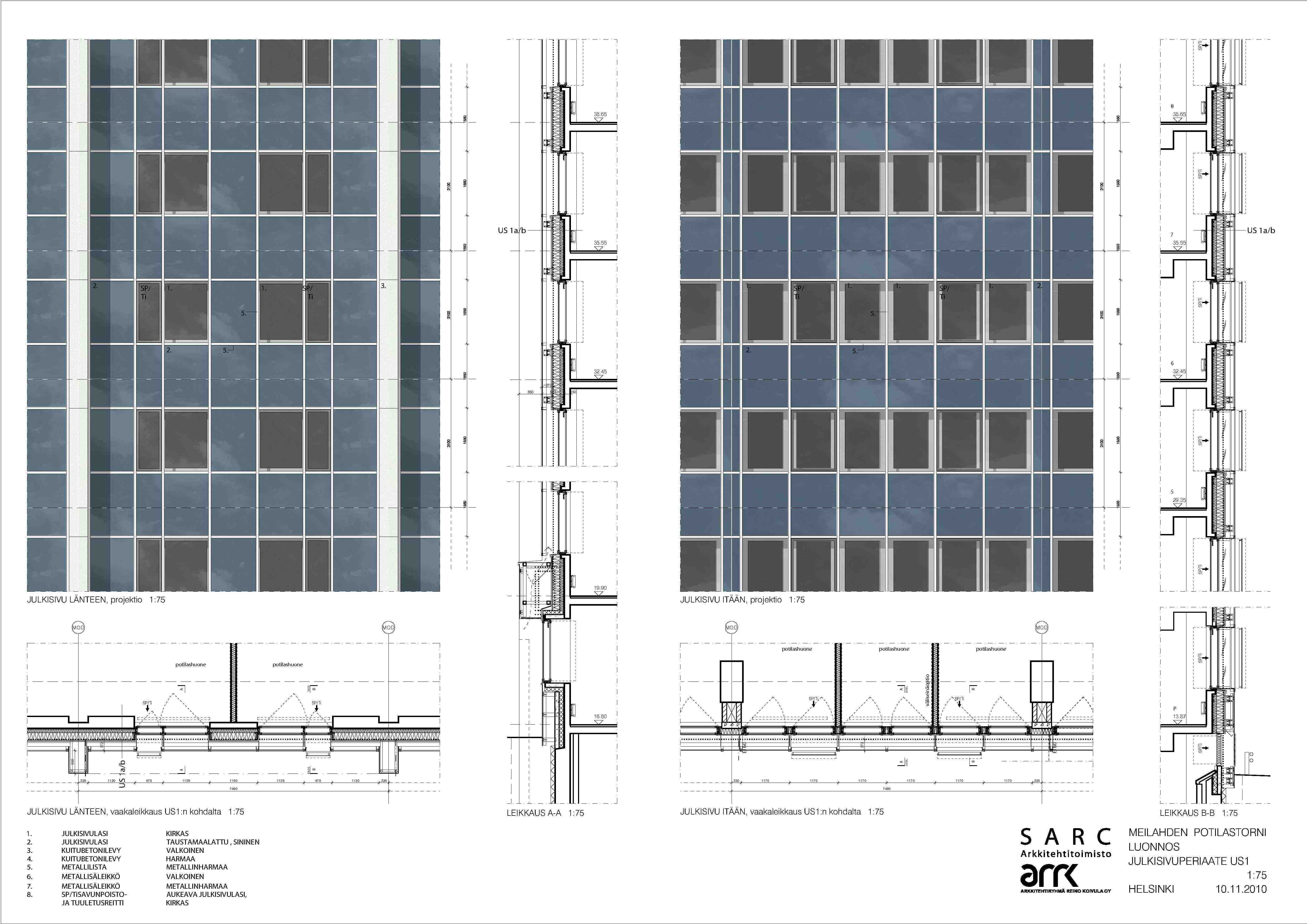 Koska rakennuksen ulkoverhoilujen toteutus ylipäätään ei ollut täysin alkuperäisen ratkaisun mukainen, myös päätyverhoilut toteutettiin rakennuksen alkuperäisiä materiaalivalintoja kunnioittaen, mutta uudella detaljiikalla. Levyjen kiinnitys piiloankkurein oli kaupunkikuvallisesti tärkeä detalji ja teknisesti erittäin vaativa ja suurta mittatarkkuutta vaativa työvaihe.
