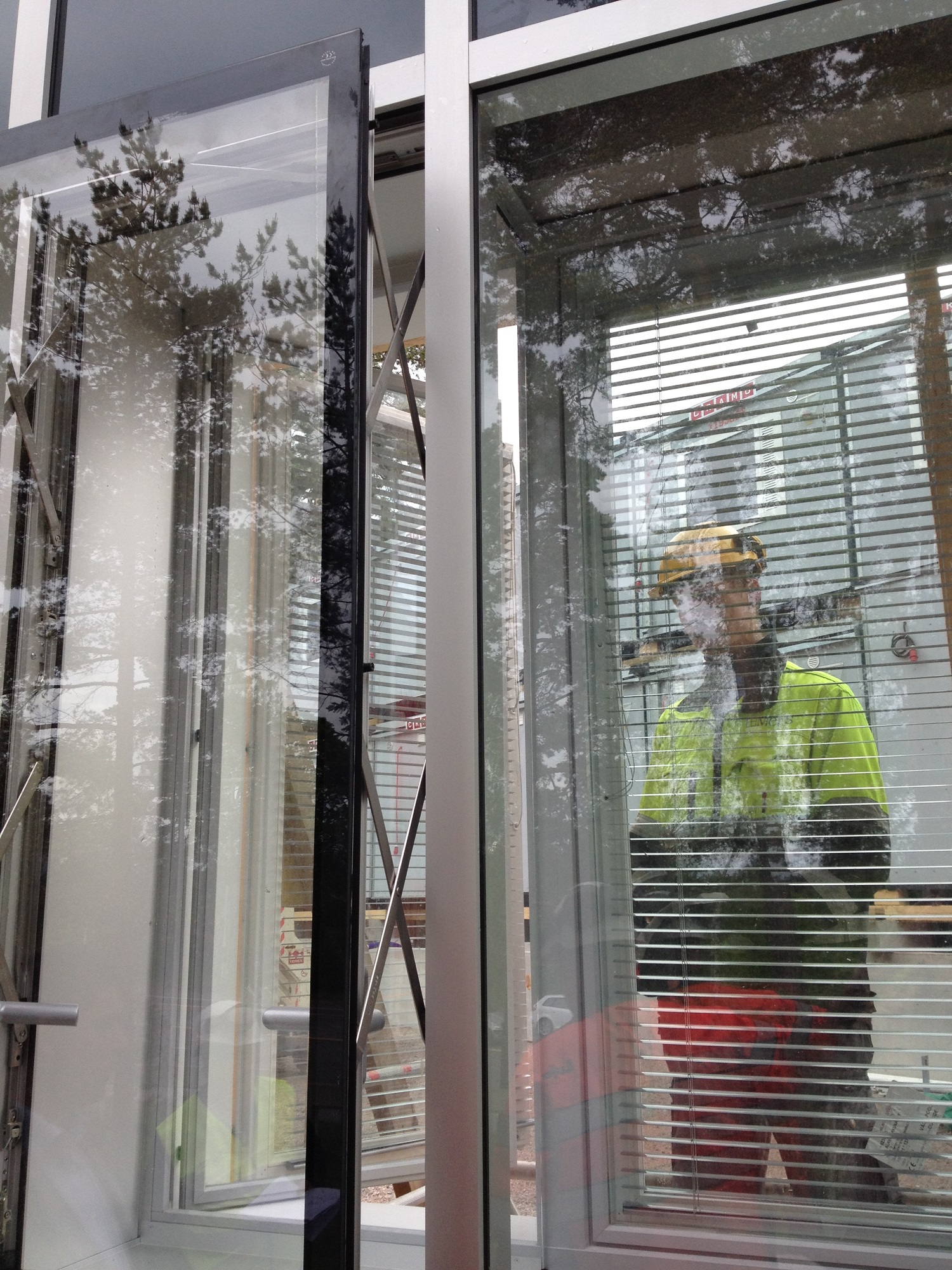 _Oik.: Lasien värisävyä haettiin mallipaloilla. Kuva: Arkkitehtitoimisto SARC Oy.