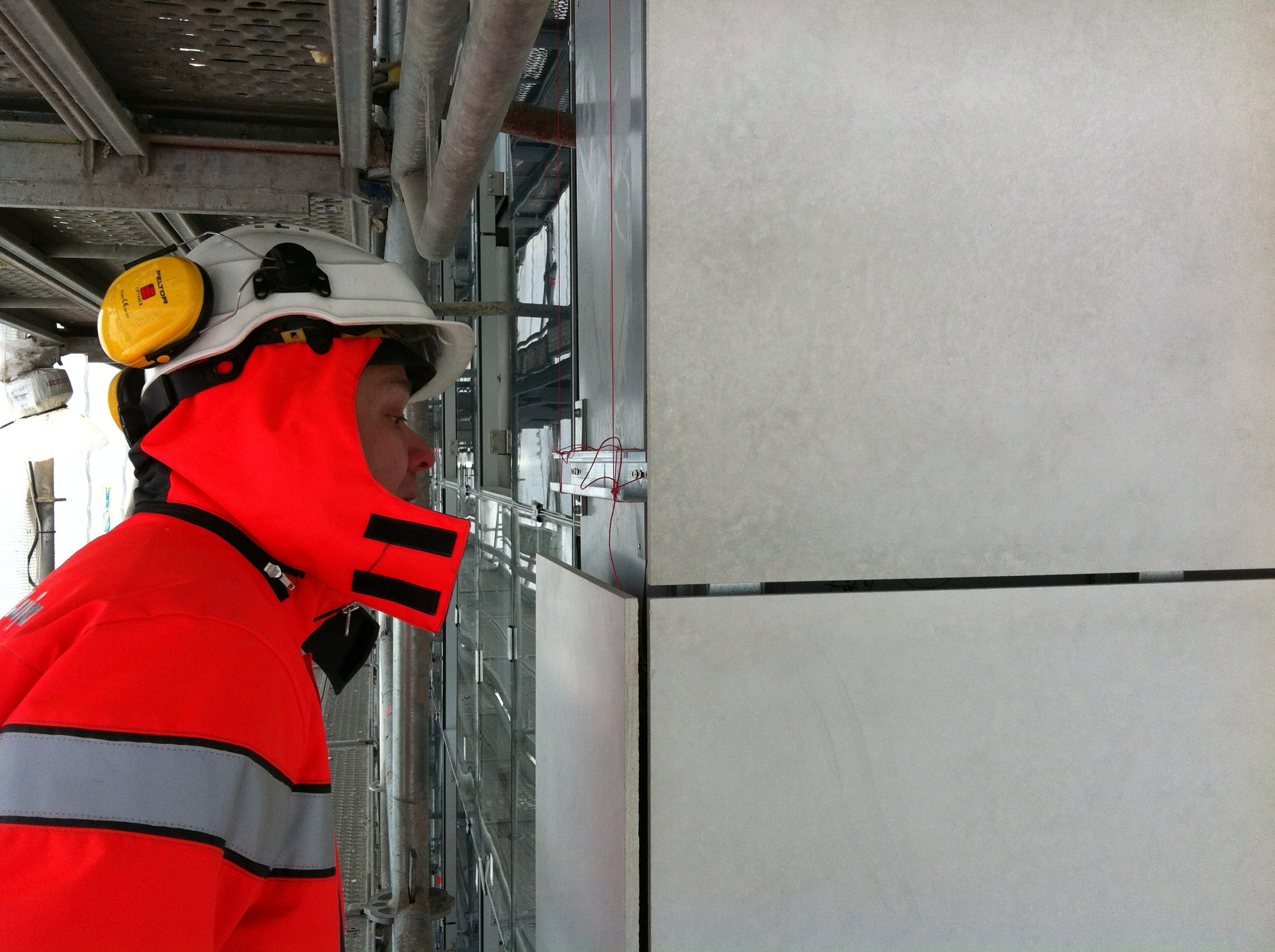 _Oik.: Tornisairaalan uuden ulkoseinärakenteen malli katselmoitavana ennen toteutuksen alkua. Kuva: Arkkitehtitoimisto SARC Oy.