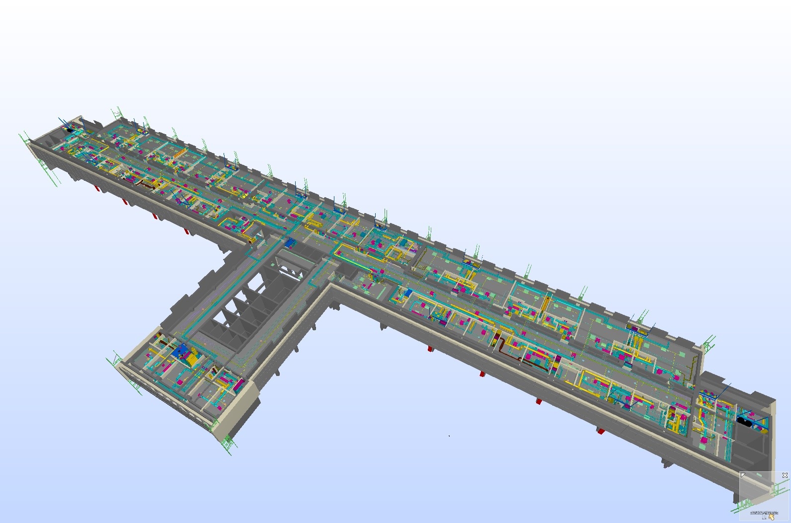 Rakennusrunko inventoitiin laserkeilaamalla heti kevyiden rakenteiden purkutöiden valmistuttua, jotta tekniikan rungon sovitus voitiin tarkastella tietomallipohjaisesti. Betonirungon laattoihin ja erityisesti palkistoihin tarvittiin valtava määrä erilaisia uusia reikävarauksia, joiden toteutettavuutta ja lisätuentoja tutkittiin tietomallipohjaisesti.