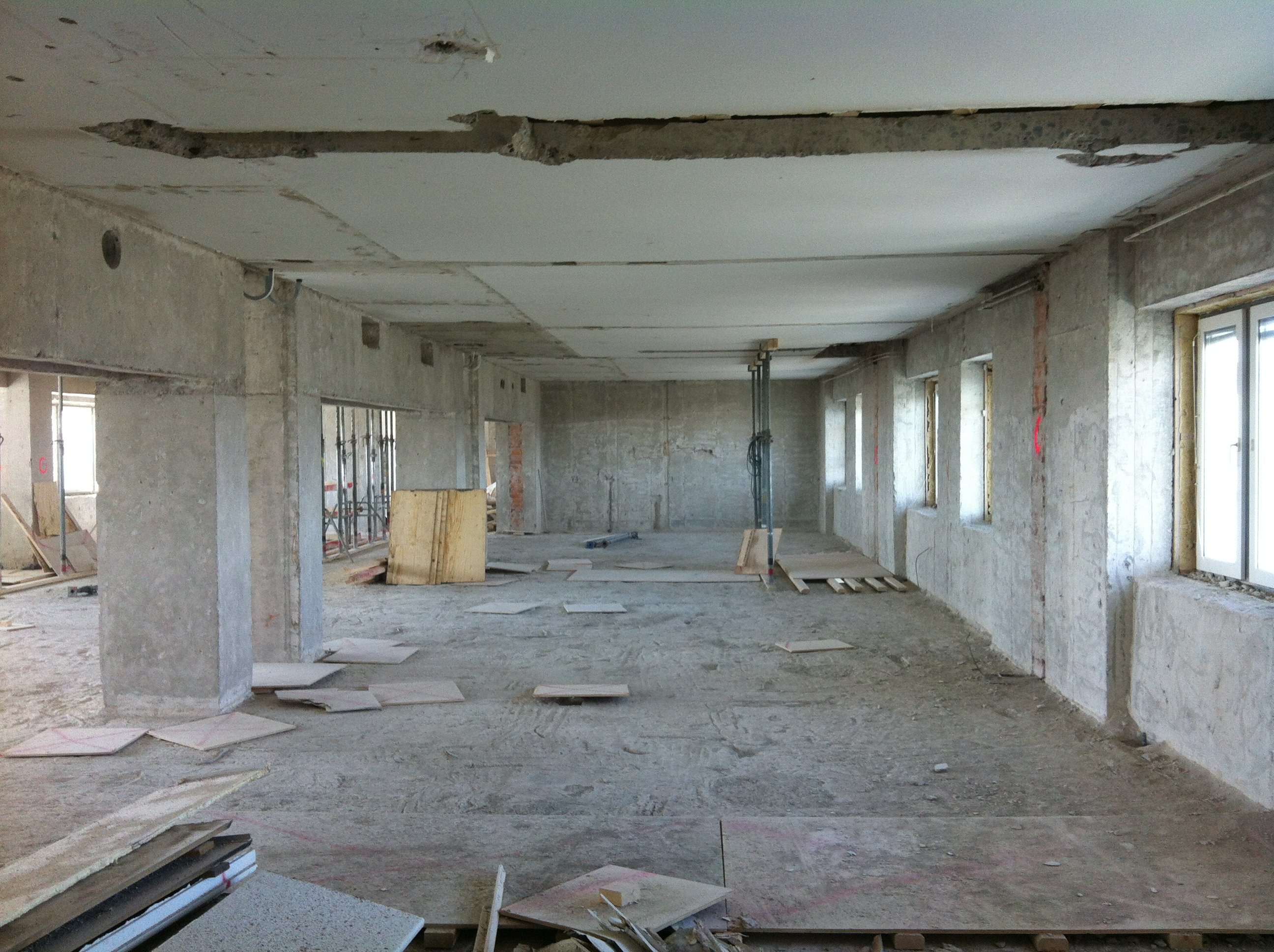 Vanhat villa- ja harkkoeristeet purettiin kokonaan pois kantavaan betonisisäkuoreen saakka. Paljastuneet betonipinnat käsiteltiin mikrobit poistavalla desinfiointiaineella ennen uuden rakenteen toteuttamista. Myös kaikki 80-luvun peruskorjauskierroksella uusitut ikkunat purettiin niiden huonon teknisen kunnon ja vaatimattomien käyttö- ja ulkonäköominaisuuksien johdosta.